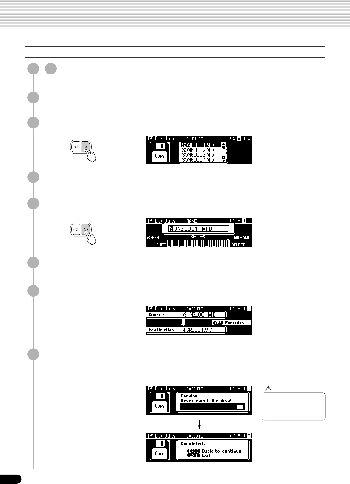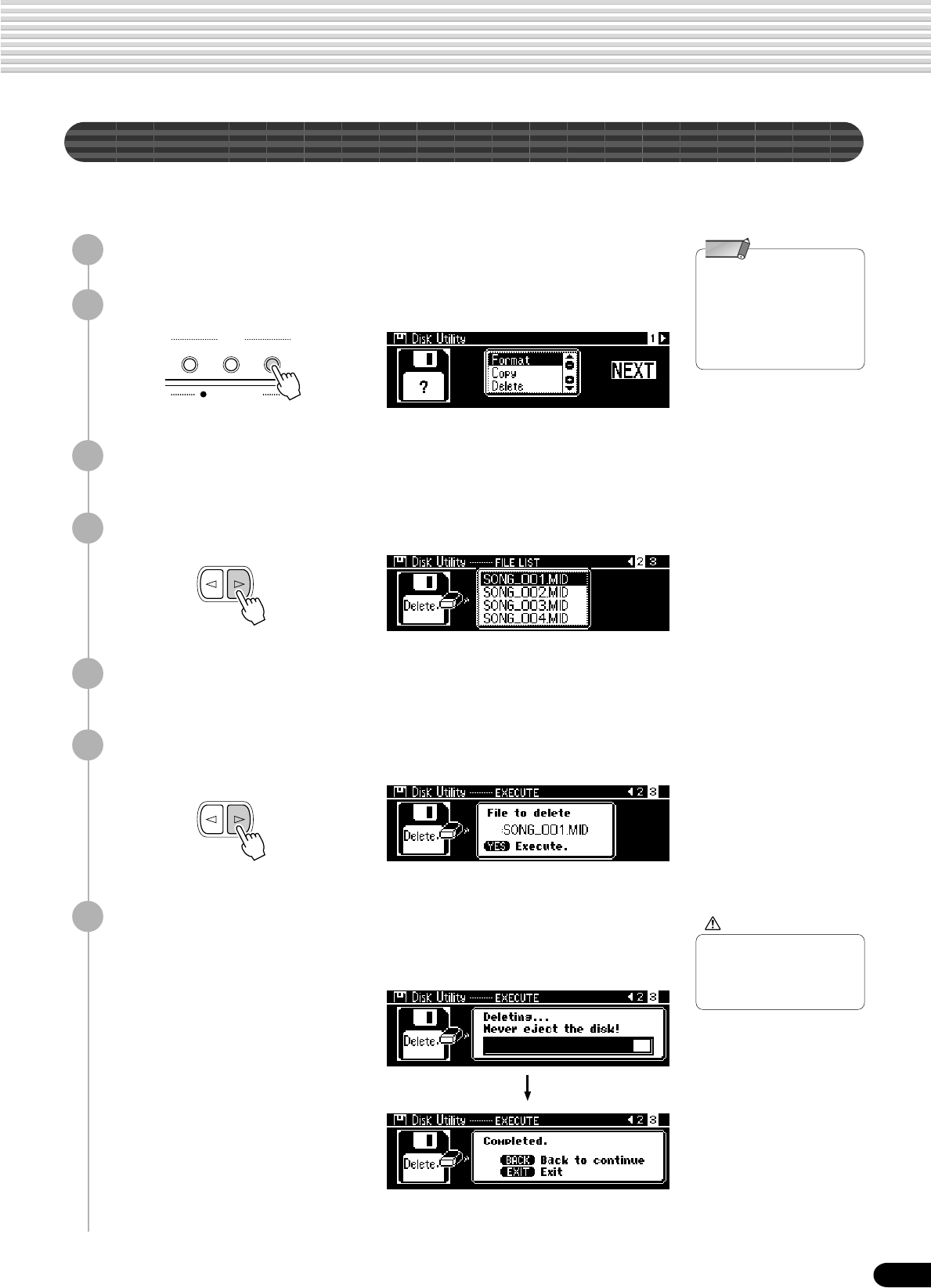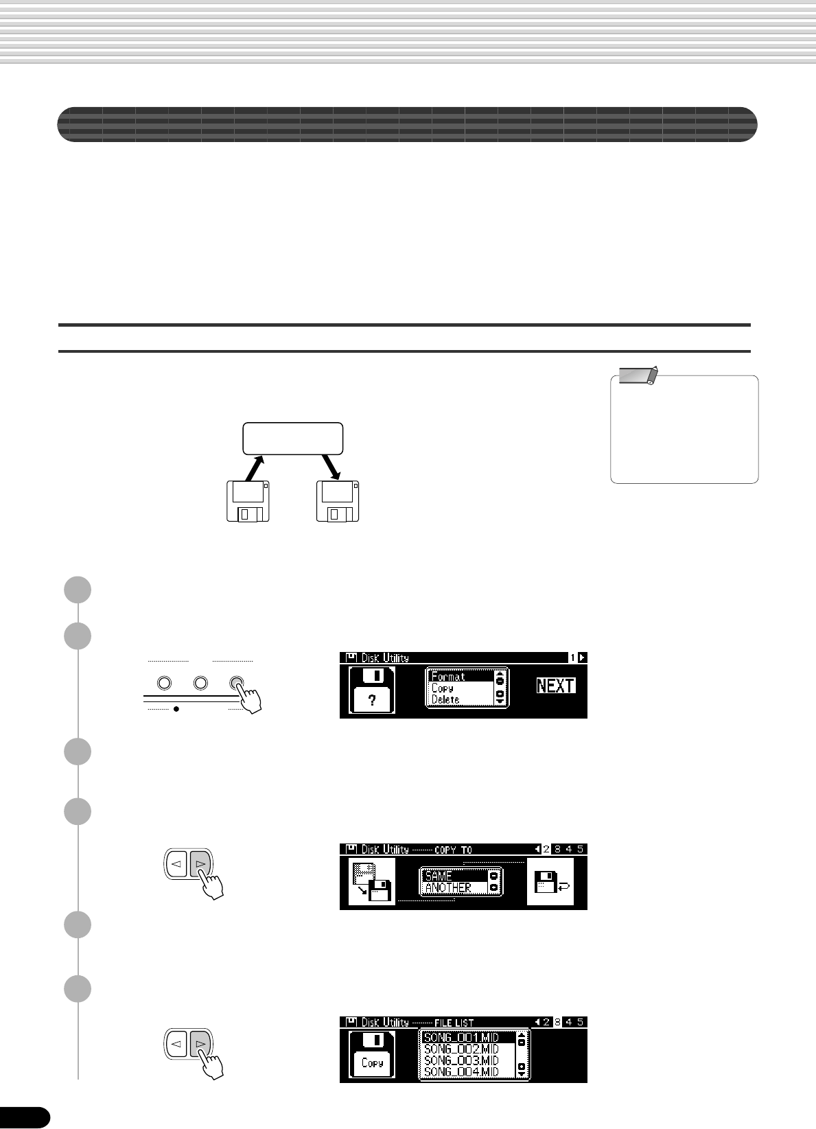 • Utility : Format, Song Copy, Delete File