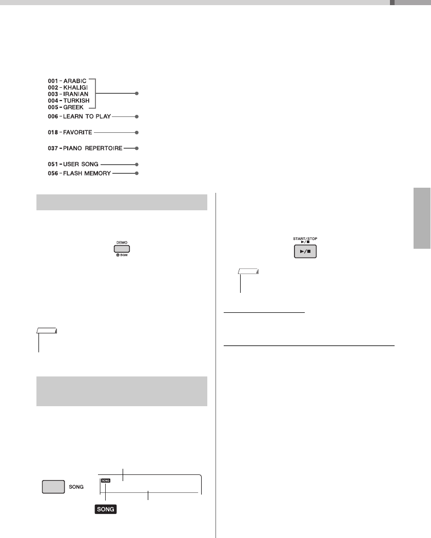 Contains music scores for the preset Songs (excluding the Demo Songs) of this instrument. After completing