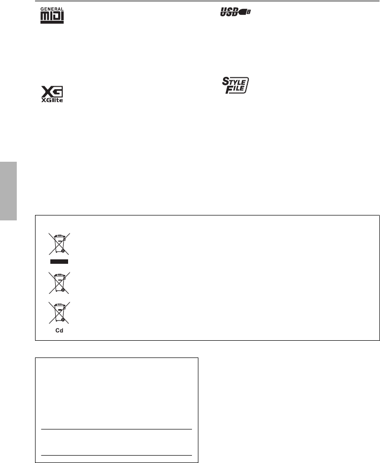 (For European Countries) Importer: Yamaha Music Europe GmbH Siemensstrasse 22-34, 25462 Rellingen, Germany