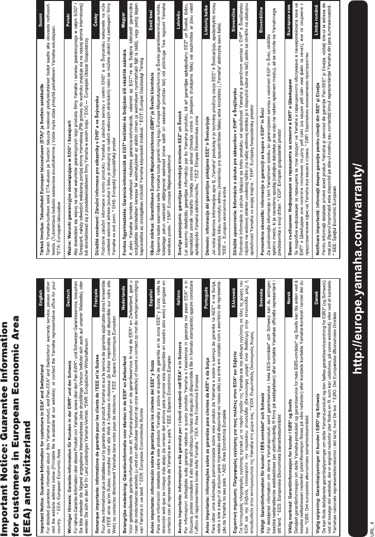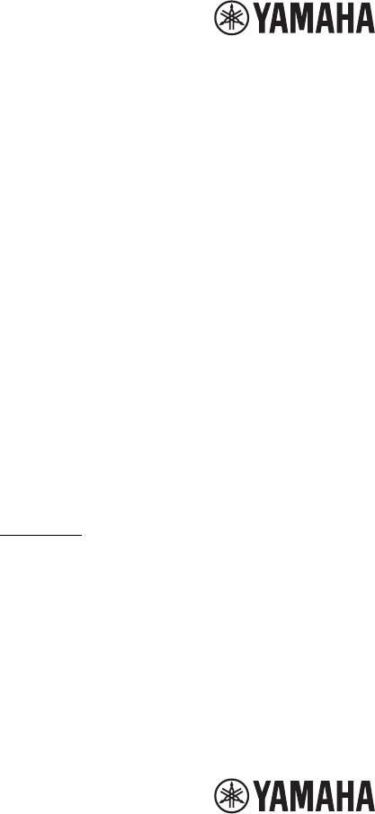 (For Europe) Importer: Yamaha Music Europe GmbH Siemensstrasse 22-34, 25462 Rellingen, Germany