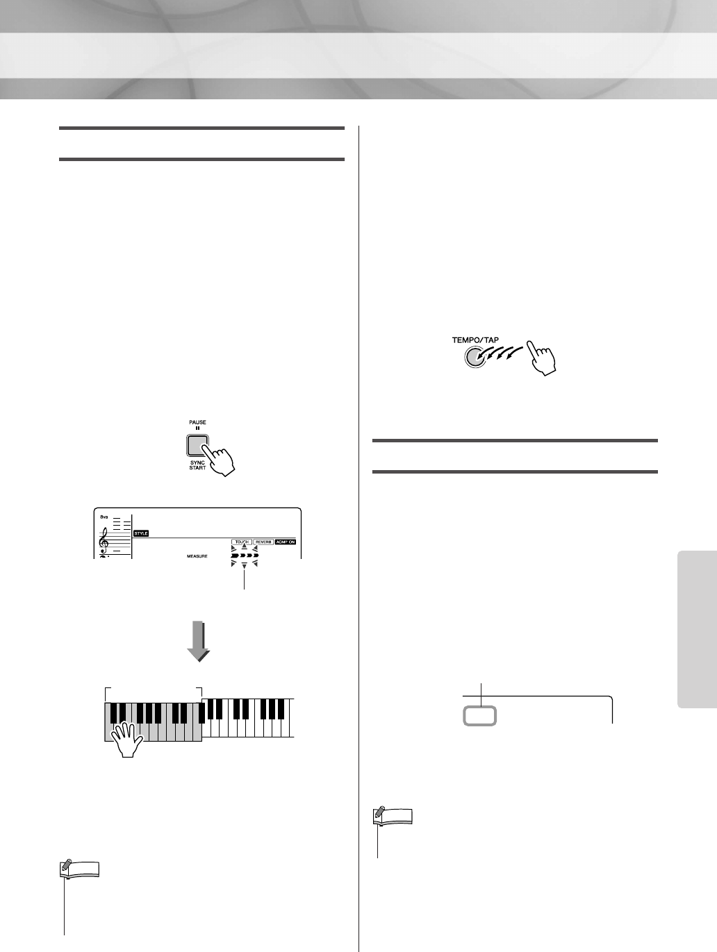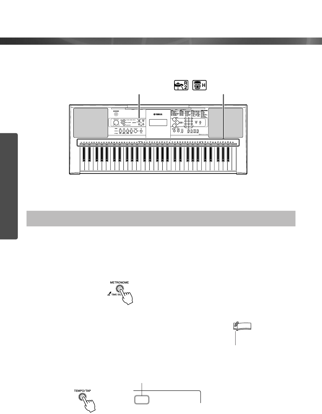- Indstilling af metronomens taktslag pr. takt og længden af hvert slag