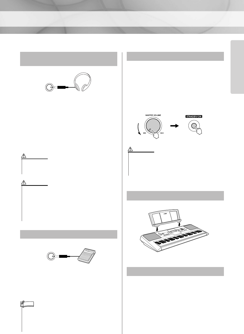 Før du tager PSR-E323/YPT-320 i brug, skal du læse afsnittet "SIKKERHEDSFORSKRIFTER" på