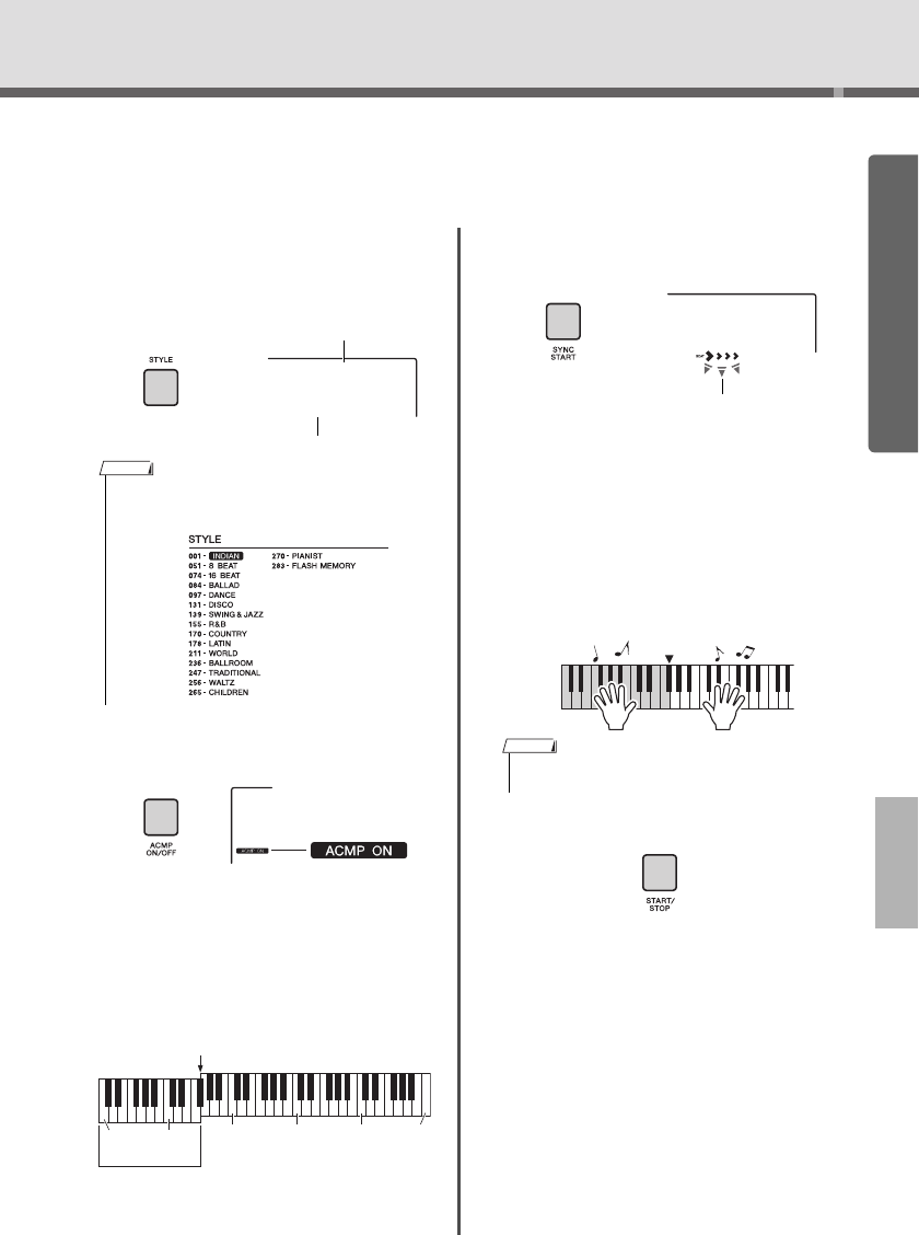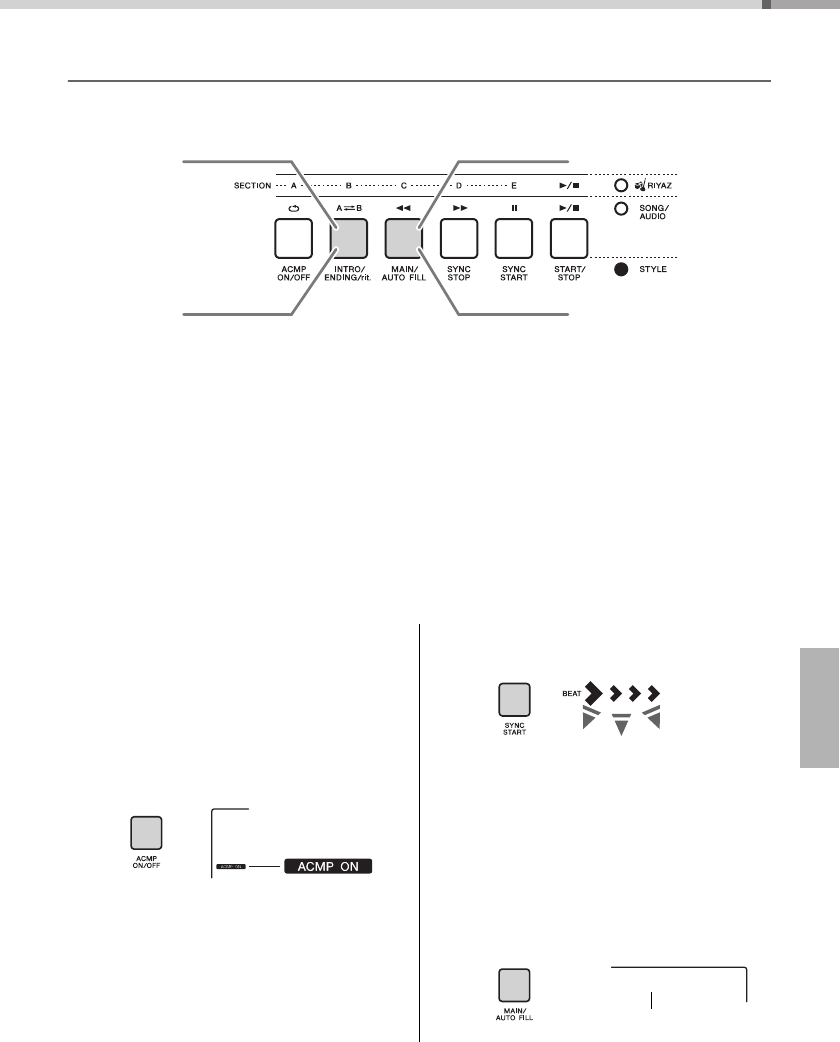 - Reproducción de acordes sin reproducción de estilo (parada de la función de acompañamiento)