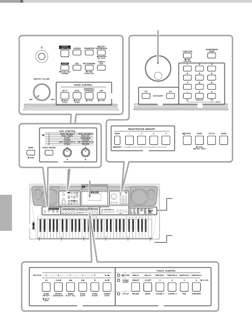 - Controles de tono: rueda PITCH BEND (inflexión del tono)