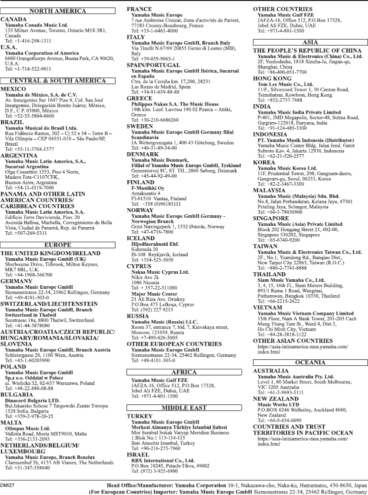 W celu uzyskania szczegółowych informacji o produktach prosimy skontaktować się z najbliższym przedstawicielem firmy Yamaha lub