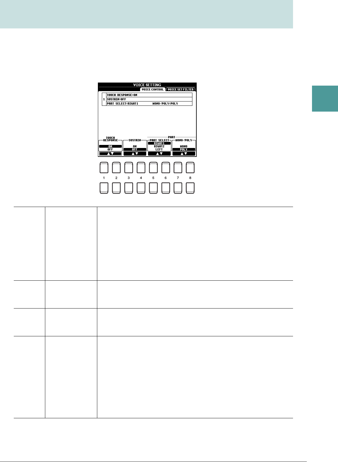 (Touch Response, Sustain, Mono/Poly) .......................... 17