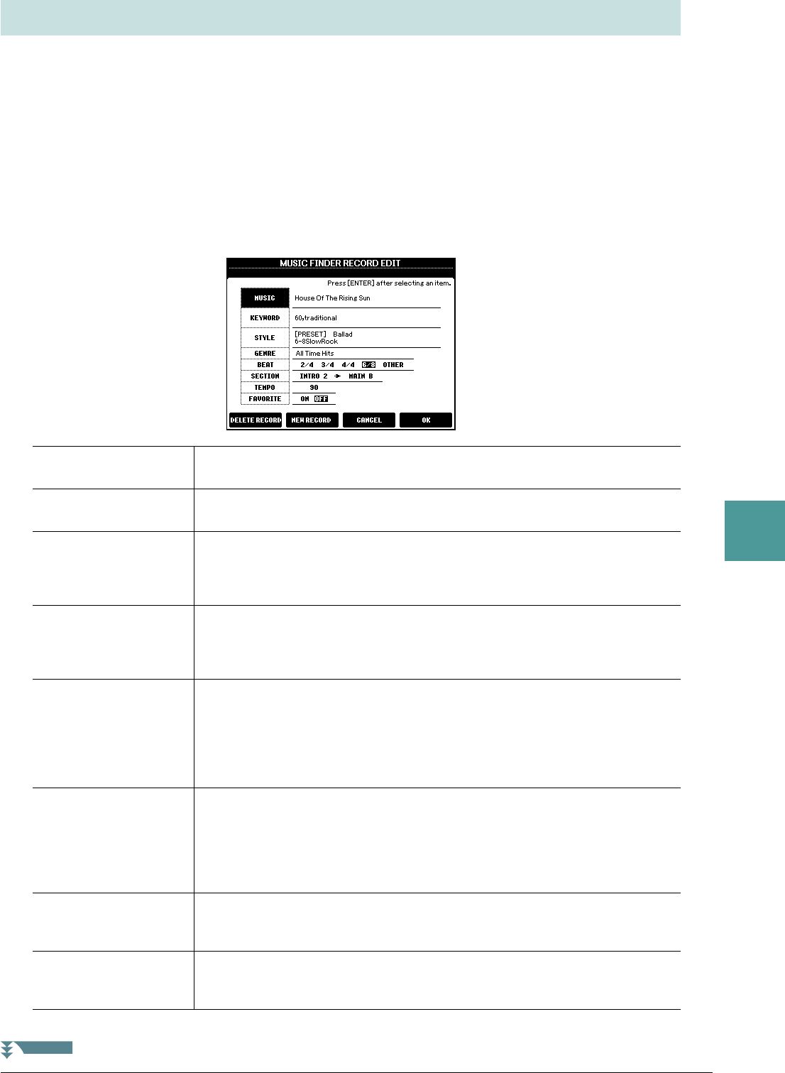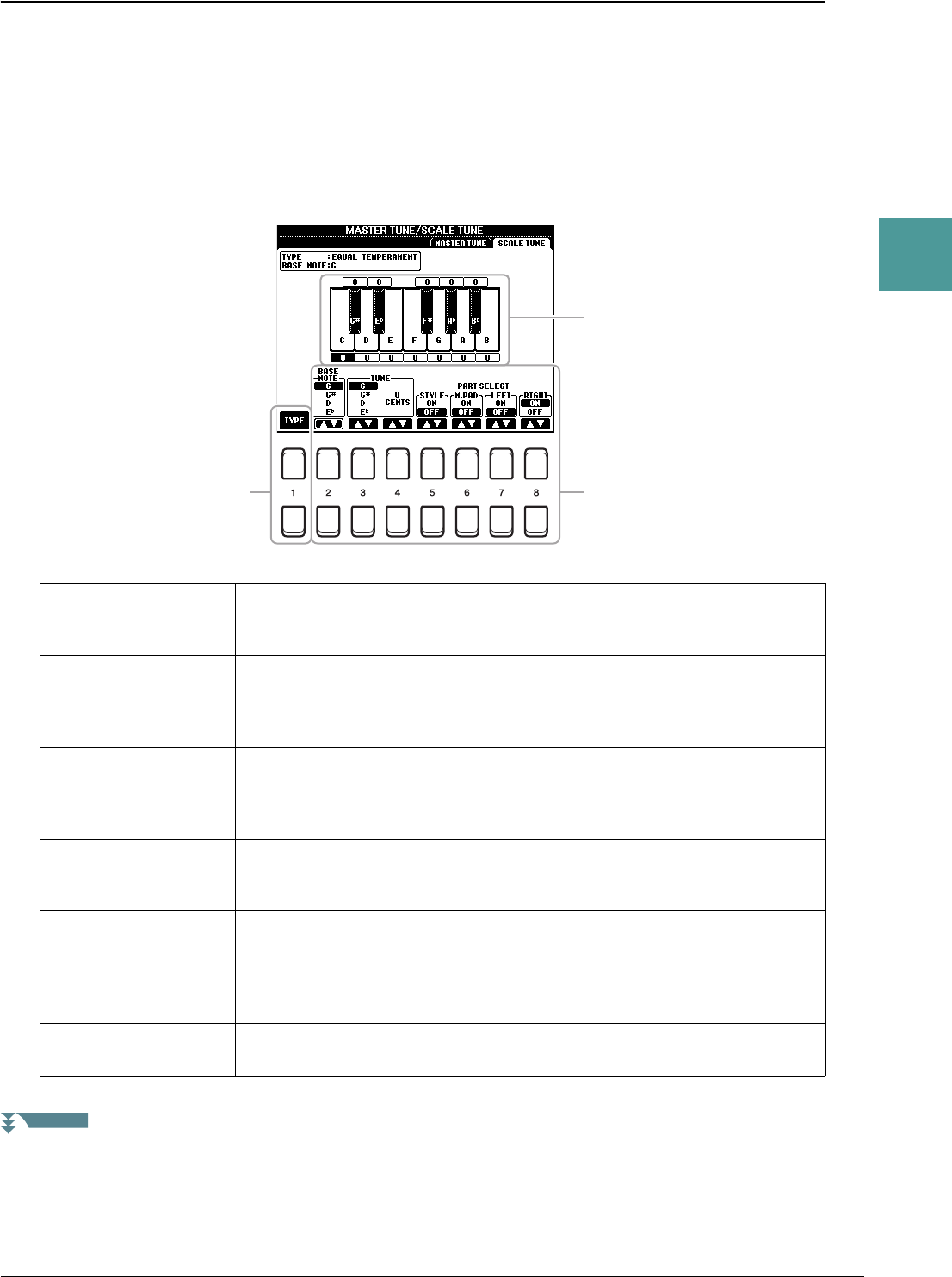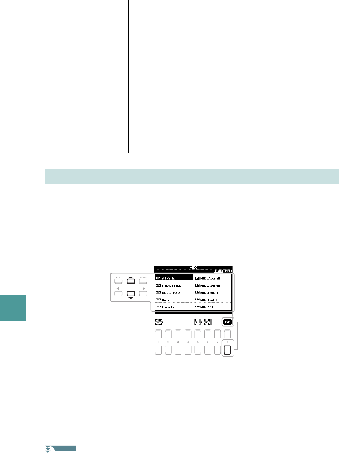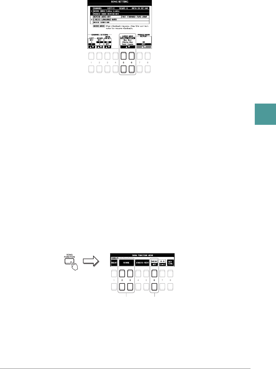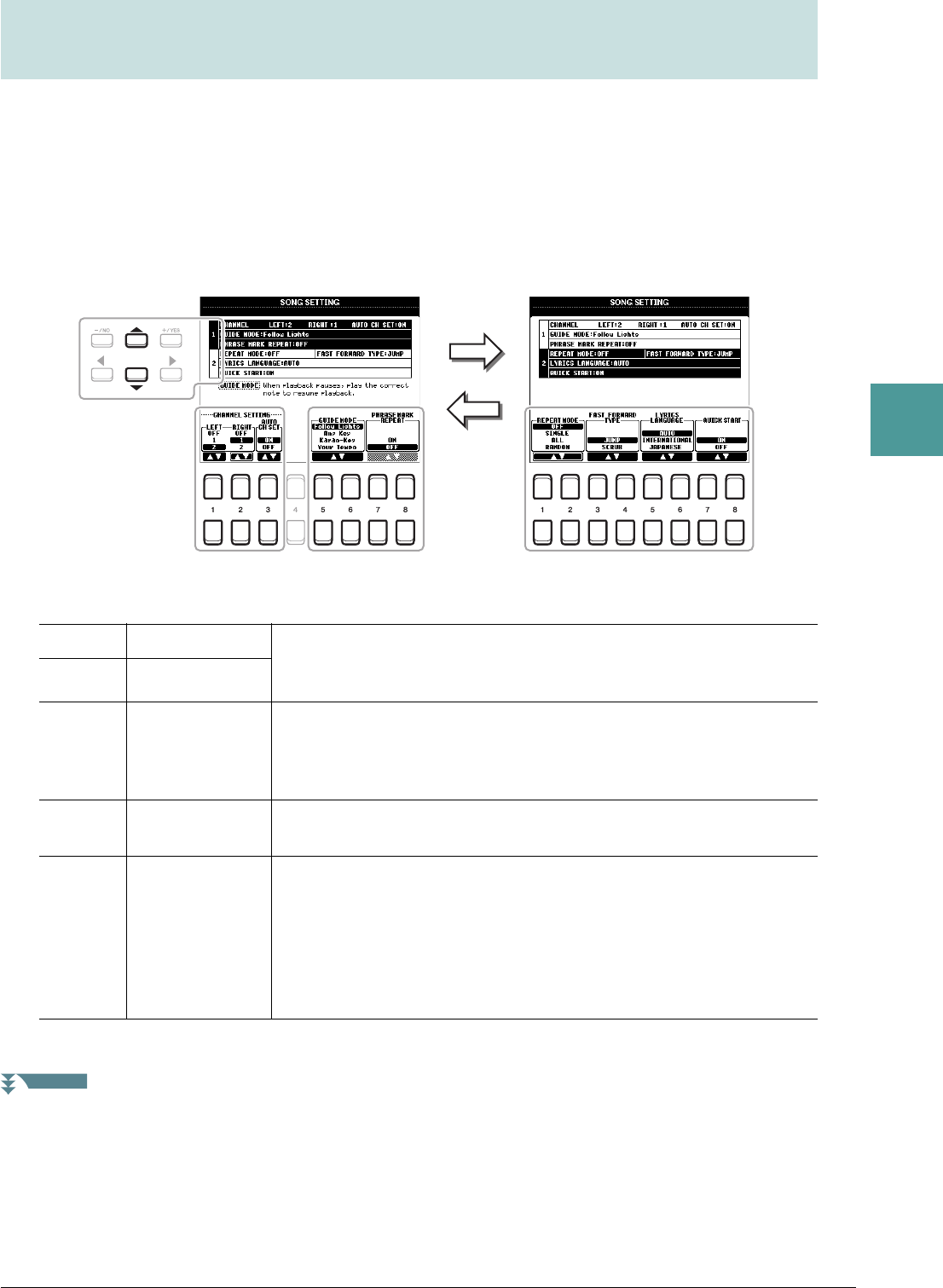 - Parámetros relacionados con la reproducción de canciones (función de guía, ajustes de canal, ajustes de repetición)