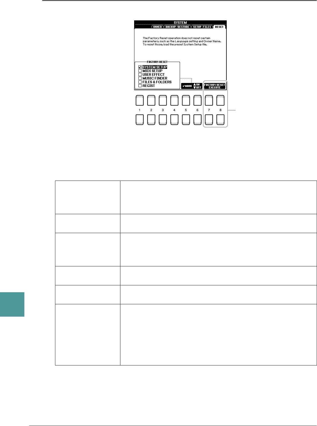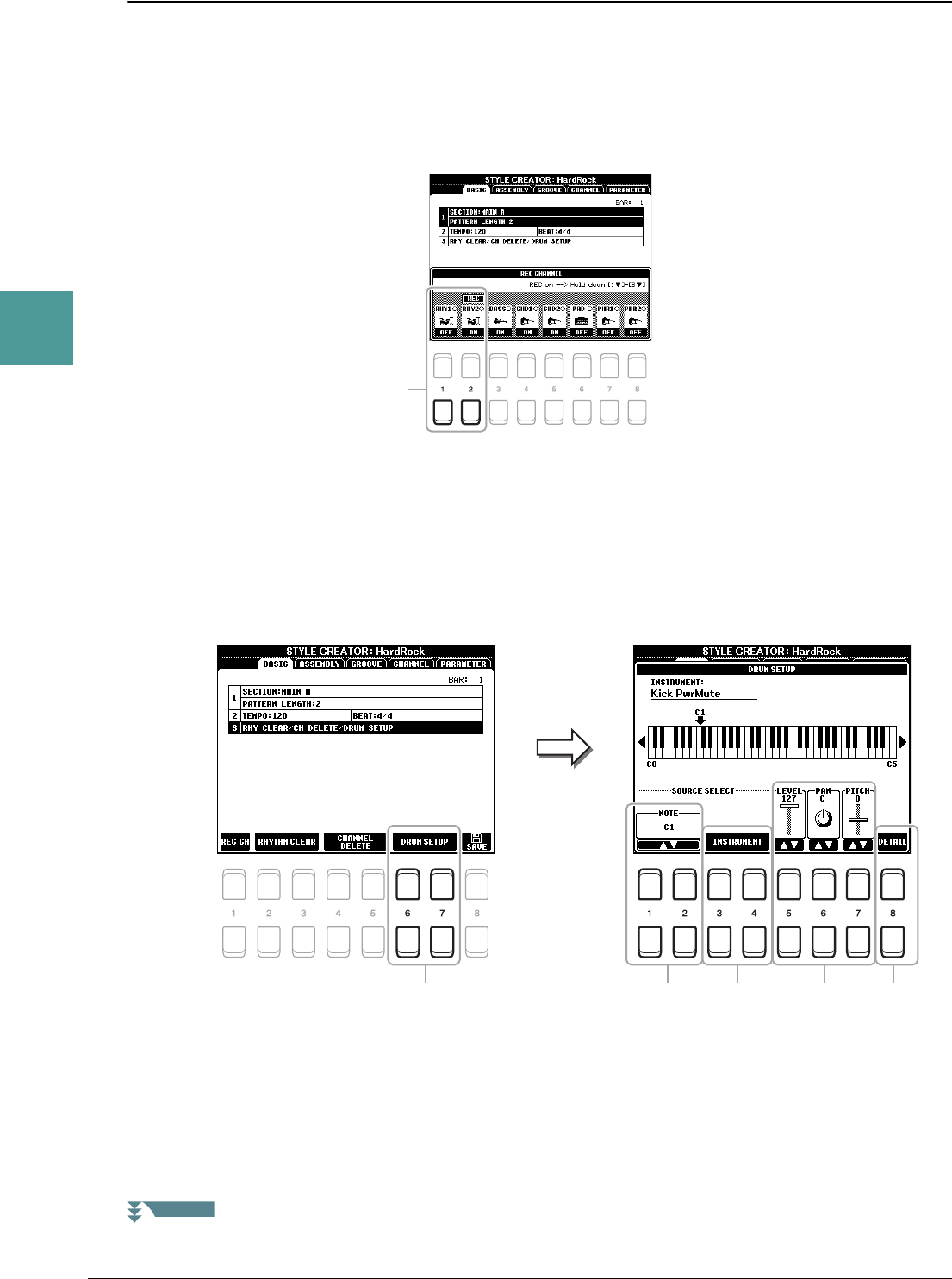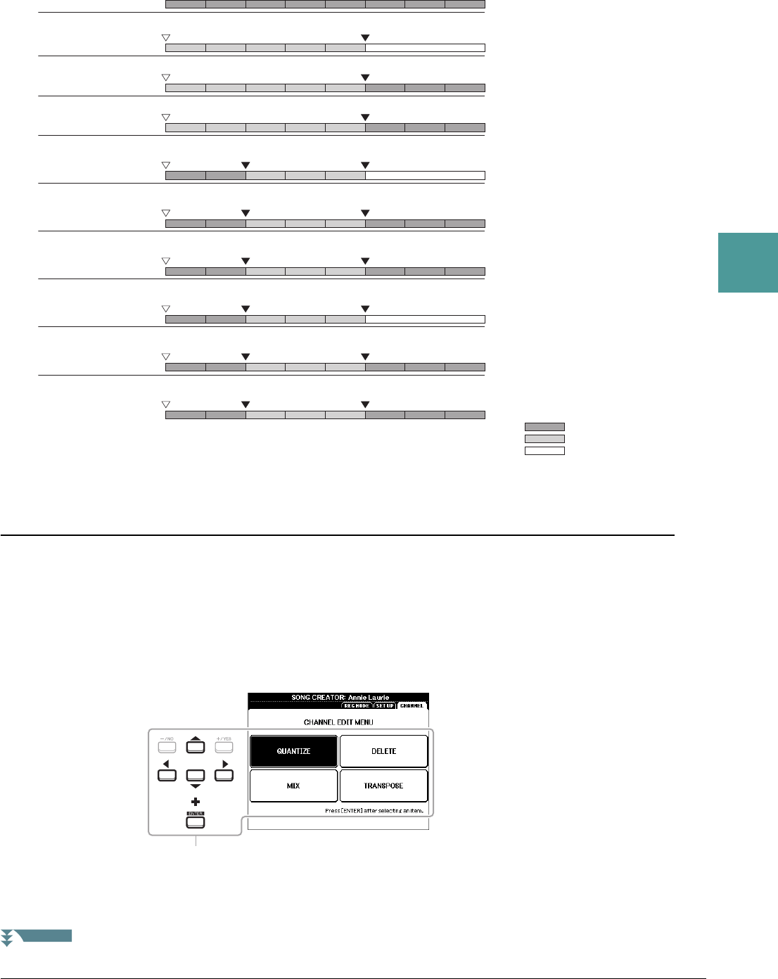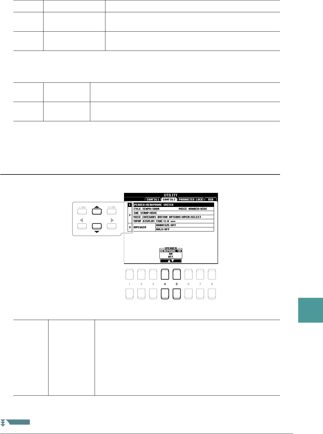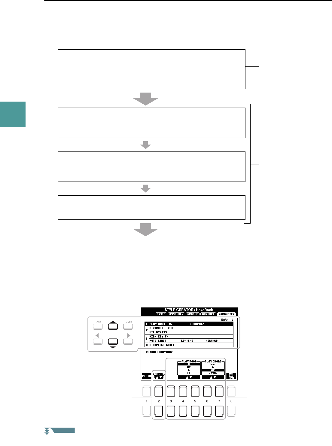 - Parámetros relacionados con la reproducción de canciones (función de guía, ajustes de canal, ajustes de repetición)