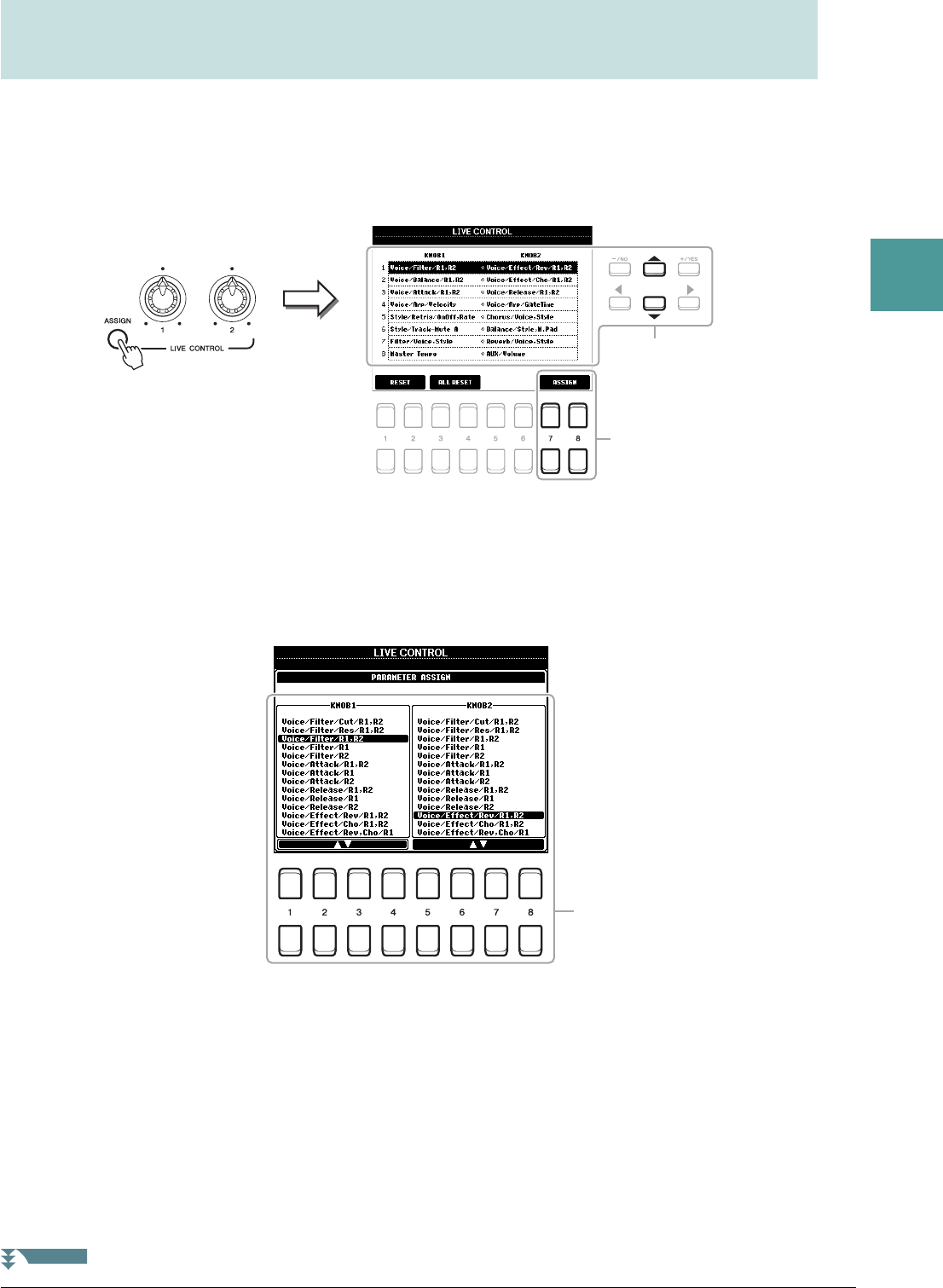 - Edición de los parámetros asignados a los mandos LIVE CONTROL