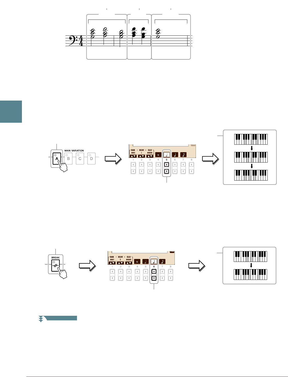 - Uso de las funciones de acompañamiento automático con la reproducción de canciones