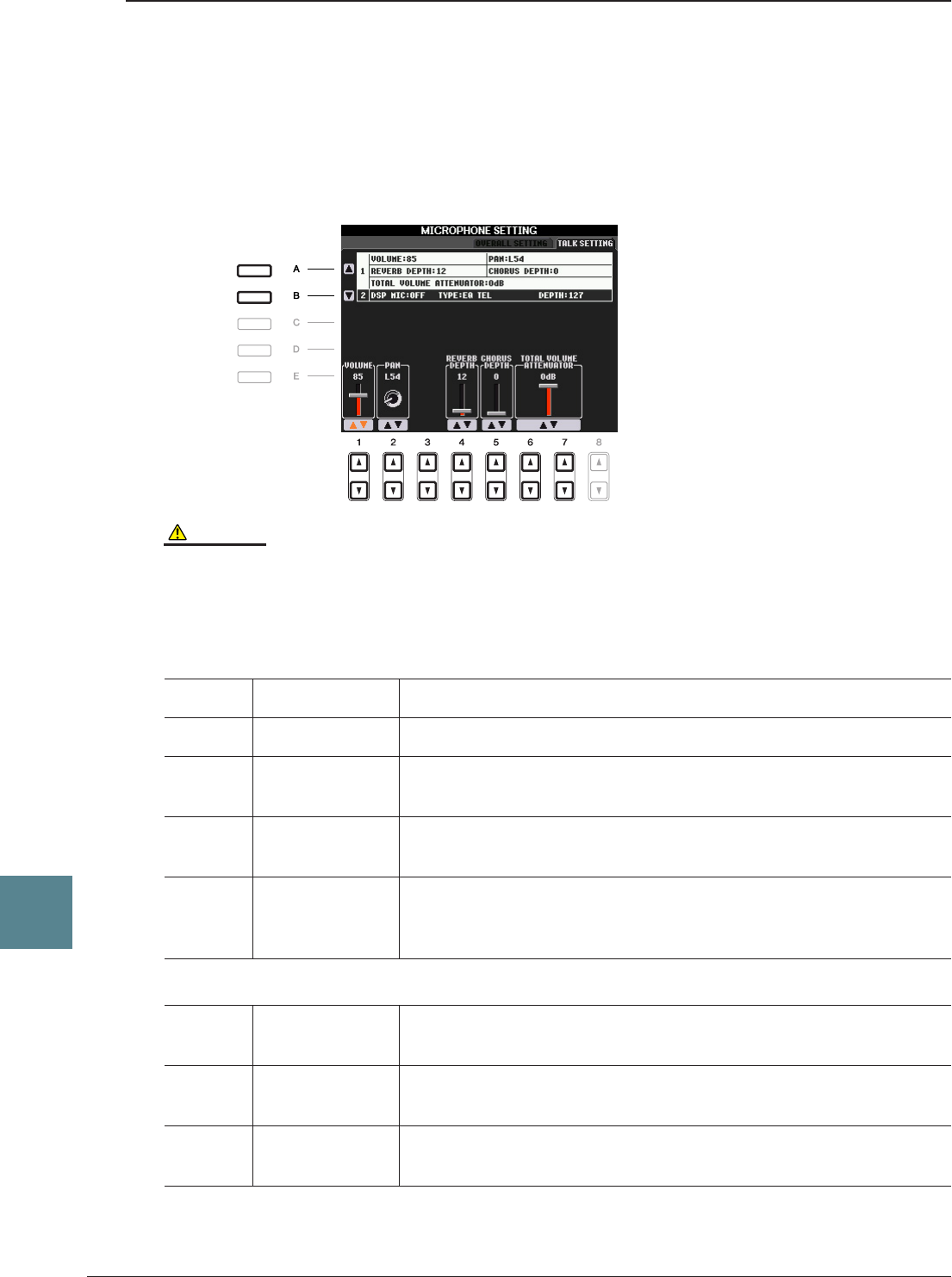 REVERB DEPTH (Talk Settings) ..... 86