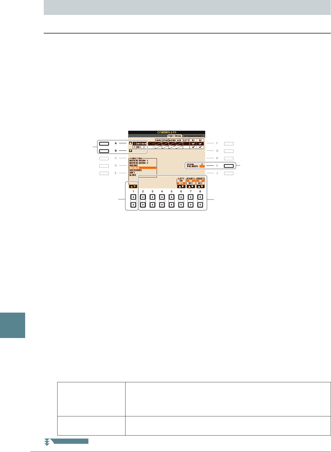 Ajustes del interruptor de pedal/controlador de pedal ..... 90