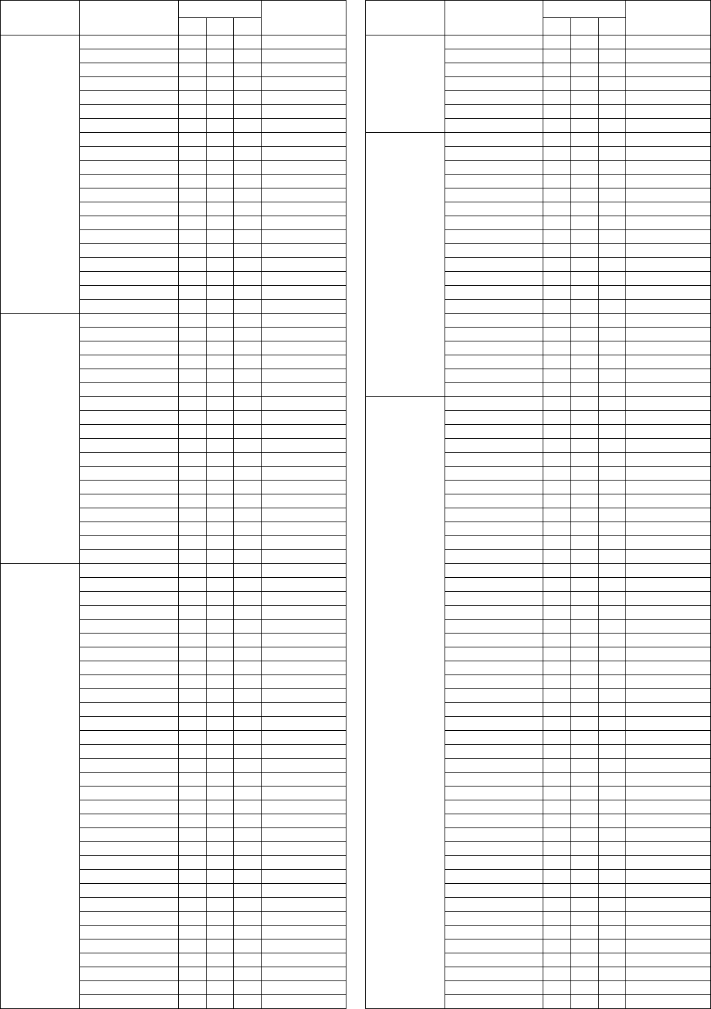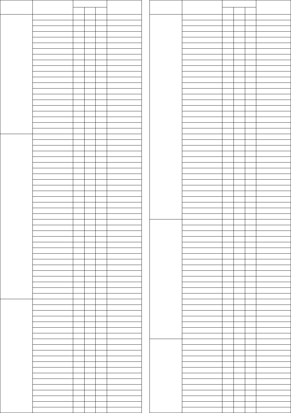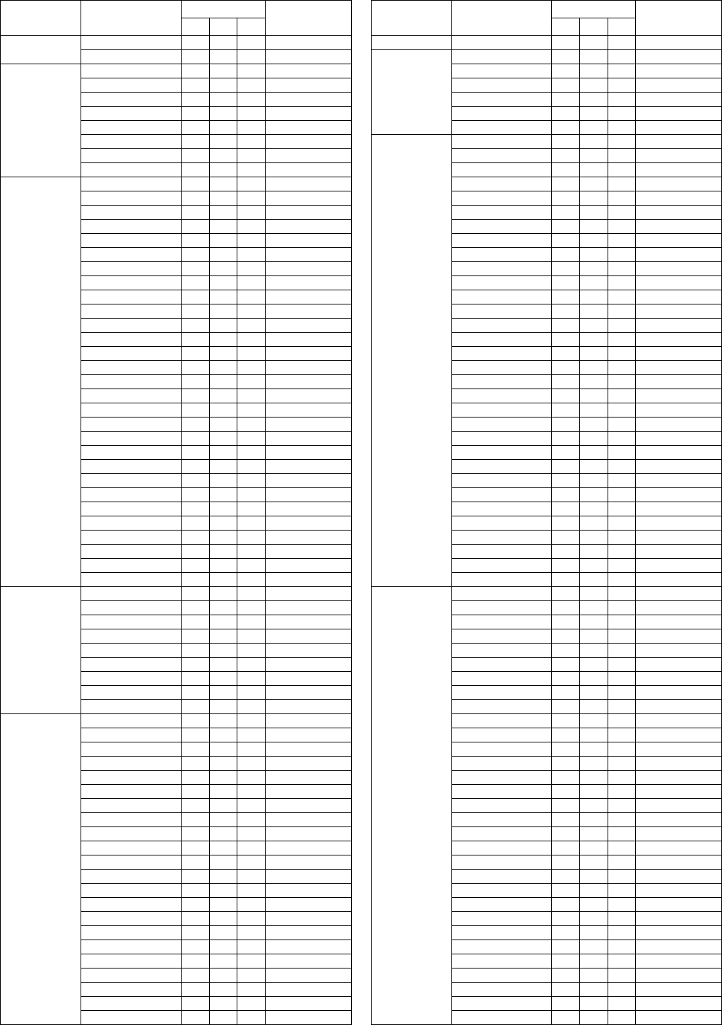 - Vocal Harmony Parameter List (PSR-S950) / Liste der Vokalharmonie-Parameter (PSR-S950) / Liste des paramètres liés à l’harmonie vocale (PSR-S950) / Lista de parámetros de armonía vocal (PSR-S950)