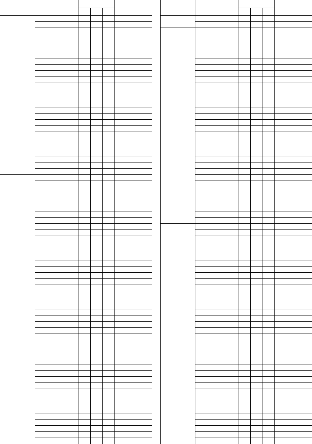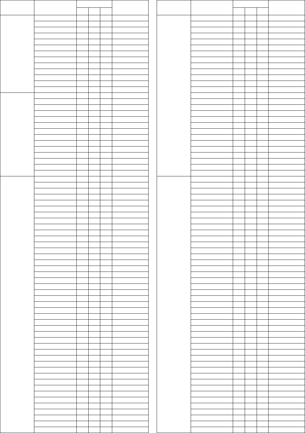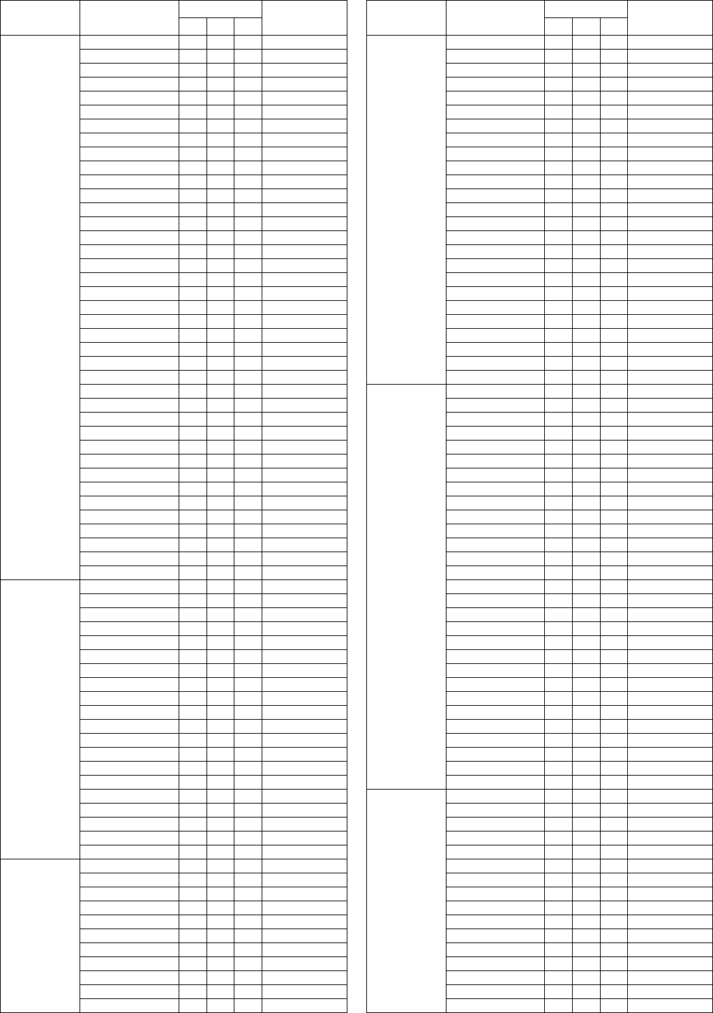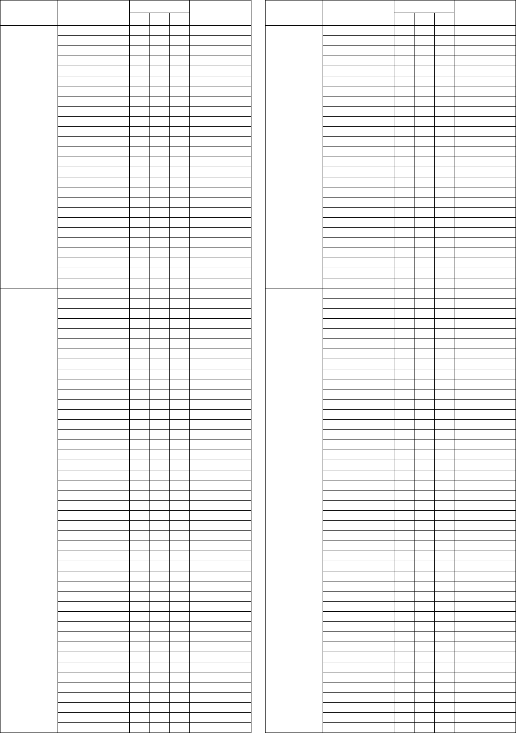 - Vocal Harmony Parameter List (PSR-S950) / Liste der Vokalharmonie-Parameter (PSR-S950) / Liste des paramètres liés à l’harmonie vocale (PSR-S950) / Lista de parámetros de armonía vocal (PSR-S950)