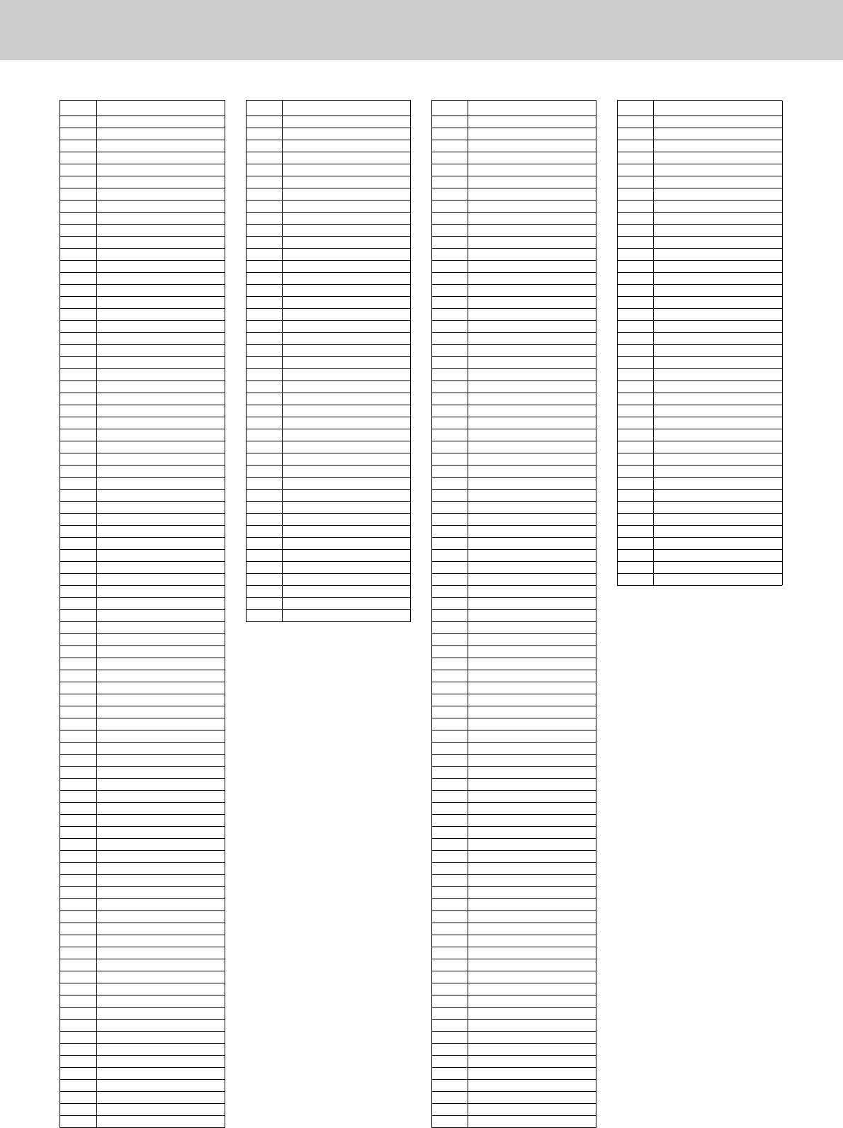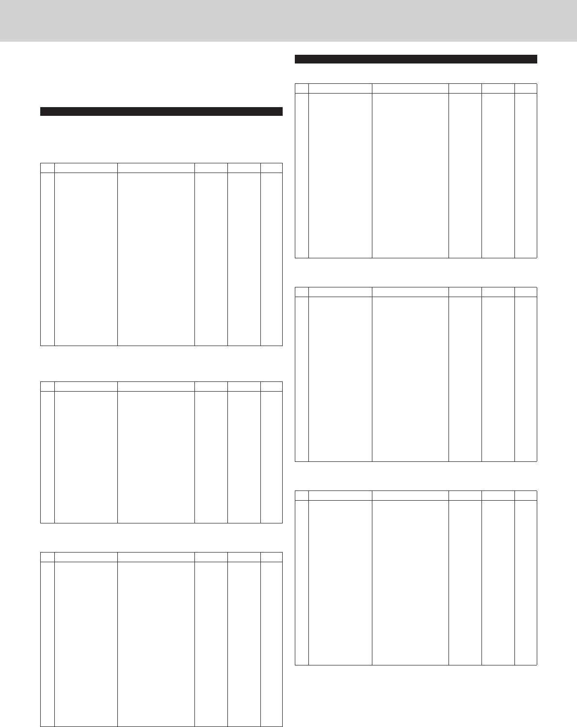 - Song System Exclusive Message List / Liste der System-Exclusive-Meldungen der Songs / Liste des messages exclusifs au système demorceaux / Lista de mensajes exclusivos del sistema de canciones