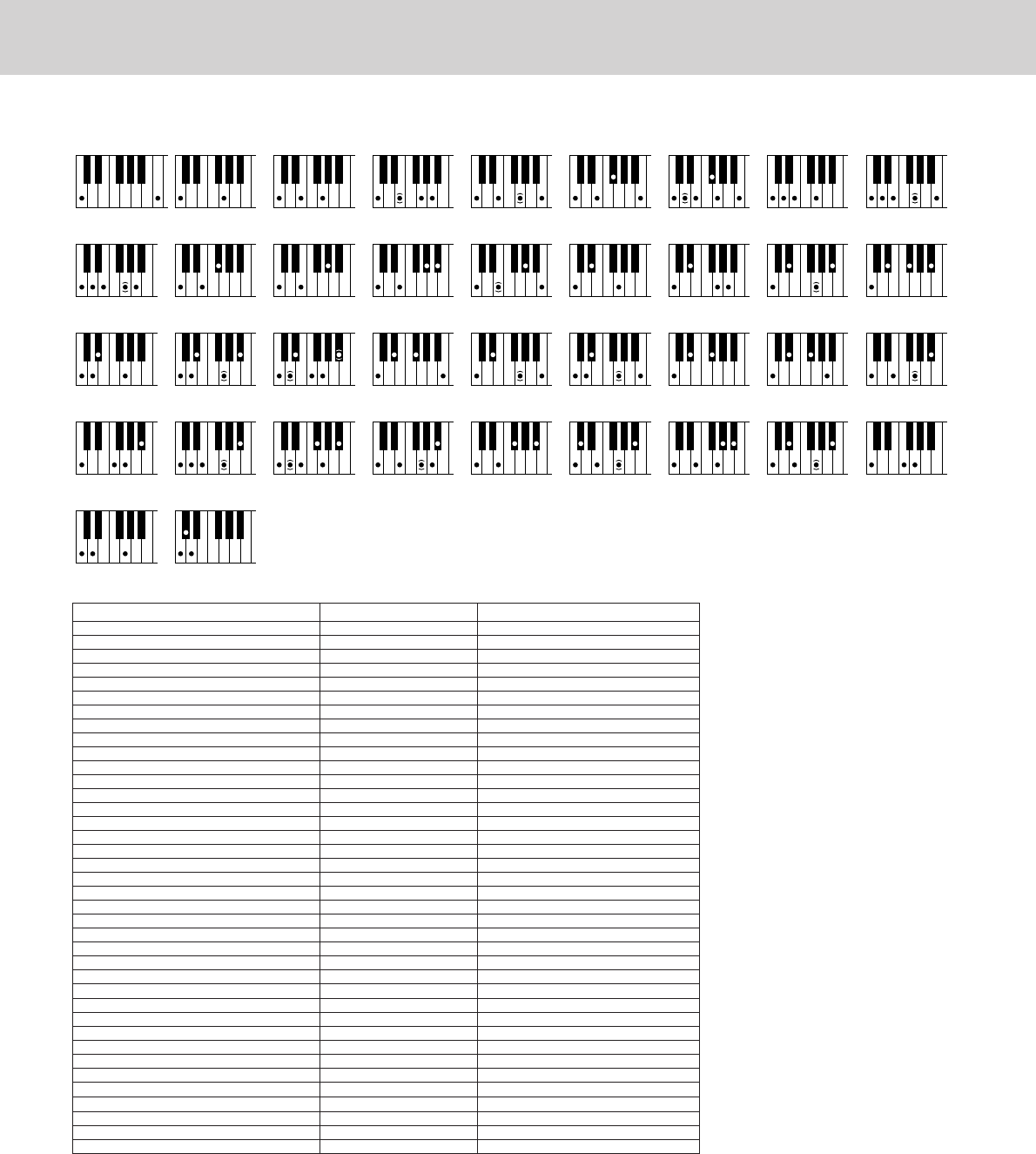 - Chord Types Recognized in the Fingered Mode / Im Fingered-Modus erkannte Akkordarten / Types d’accords reconnus en mode Fingered / Tipos de acordes reconocidos en el modo Fingered (digitado)
