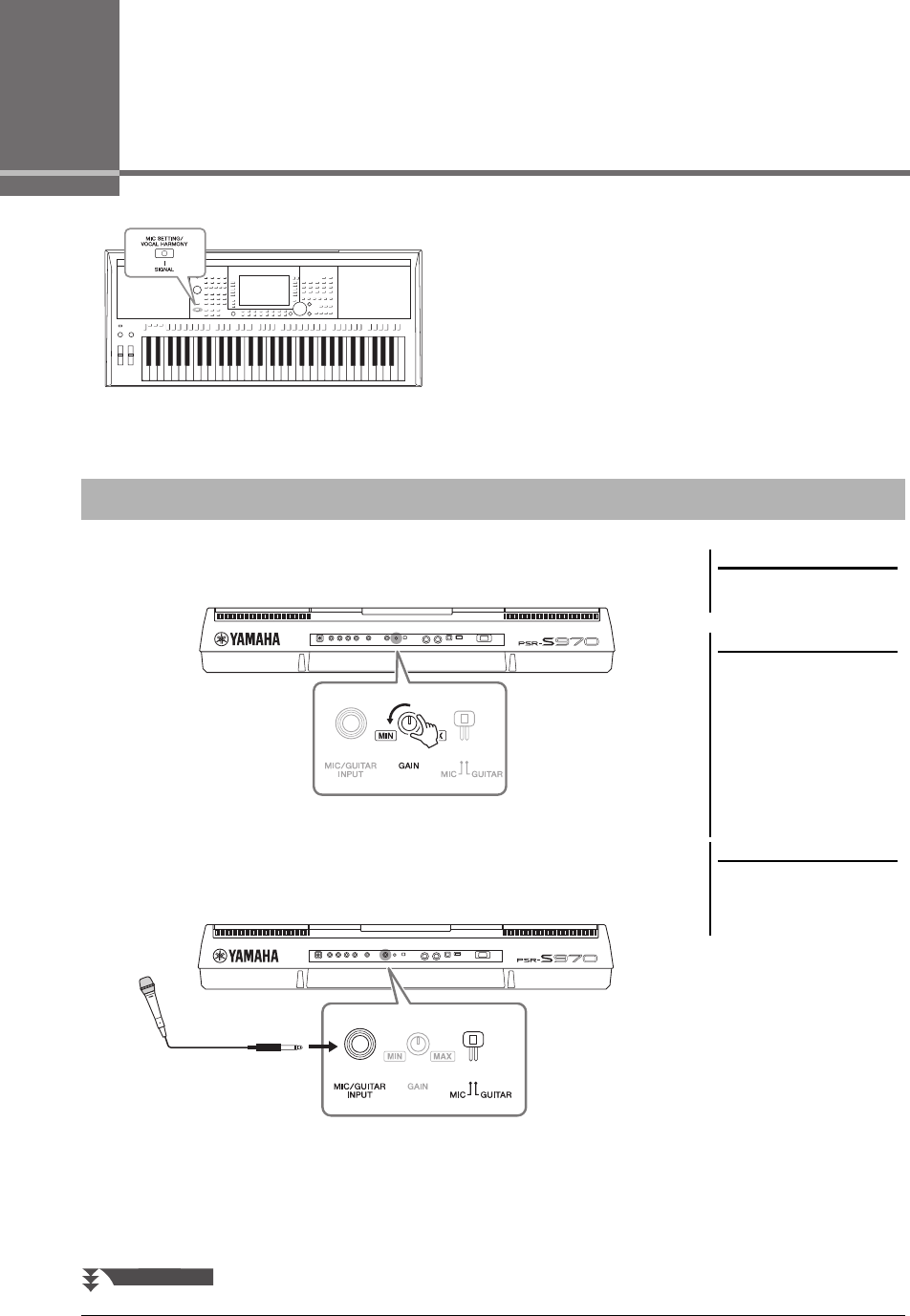 - Collegamento di un microfono o una chitarra (jack [MIC/GUITAR INPUT])