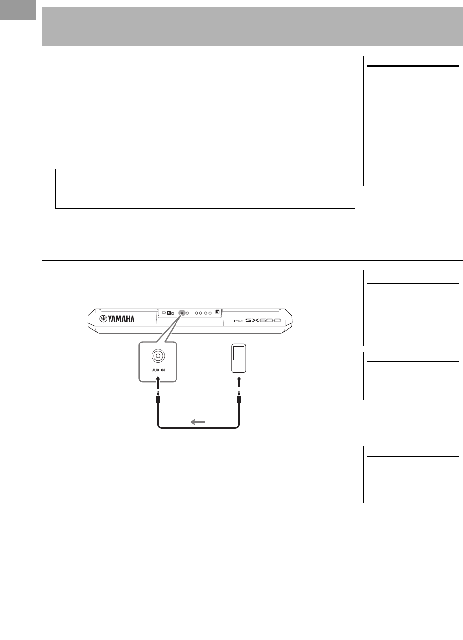 - Listening to Audio Playback by an External Device through the Instrument’s Speaker ([AUX IN] jack)