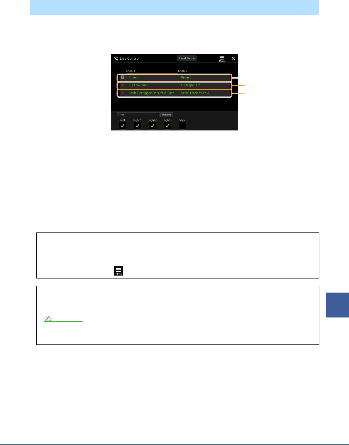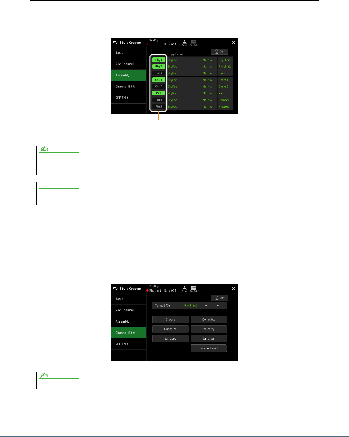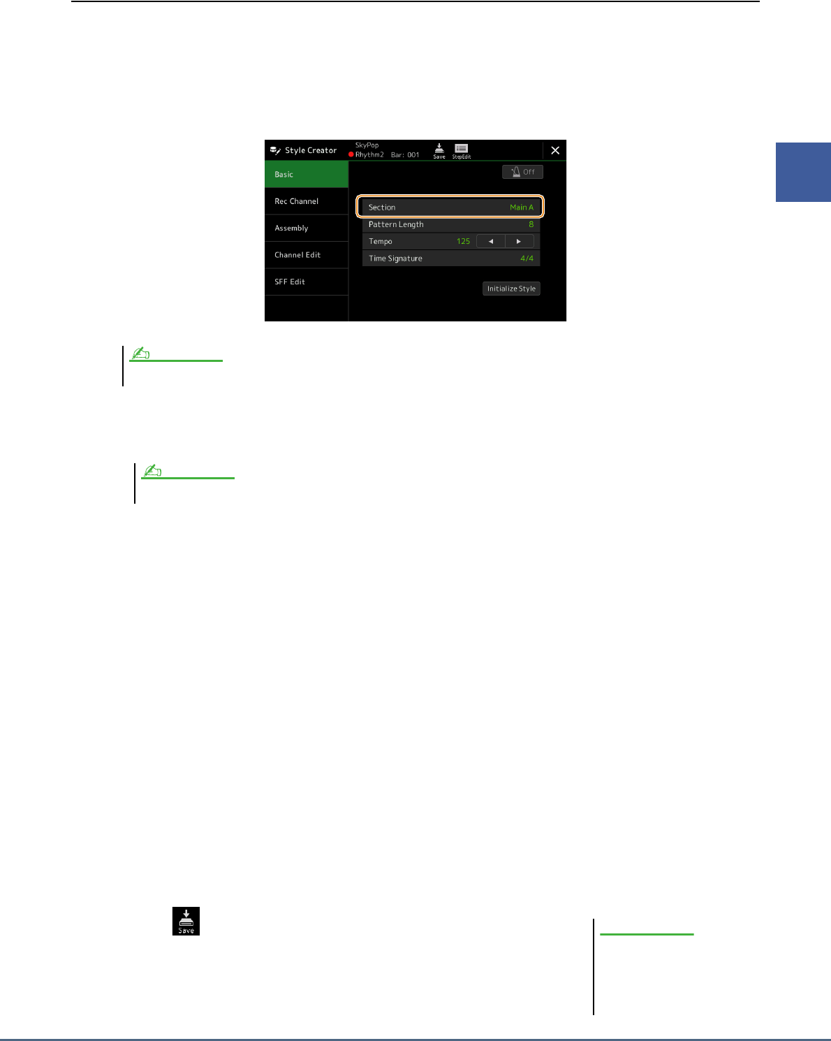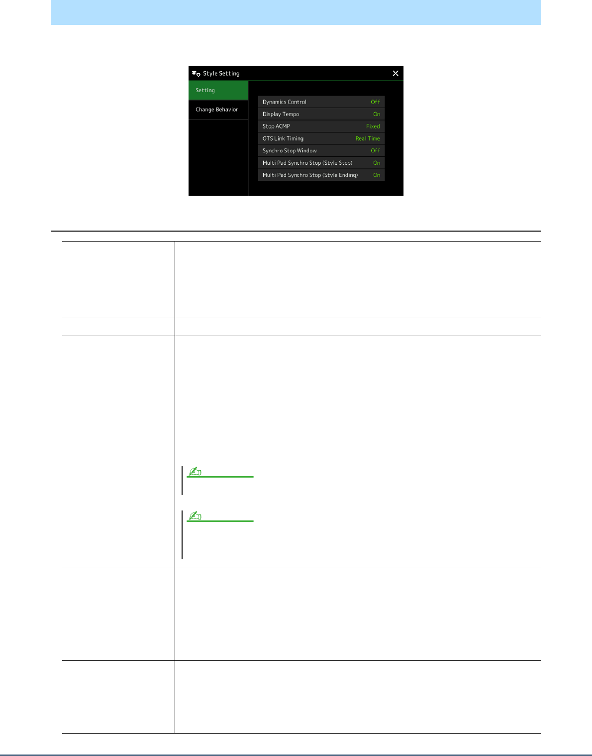 - Style Playback Related Settings