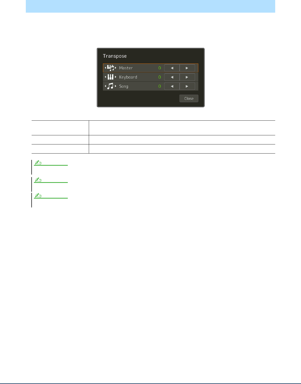 - Fine Tuning the Pitch of the Entire Instrument (Master Tune)