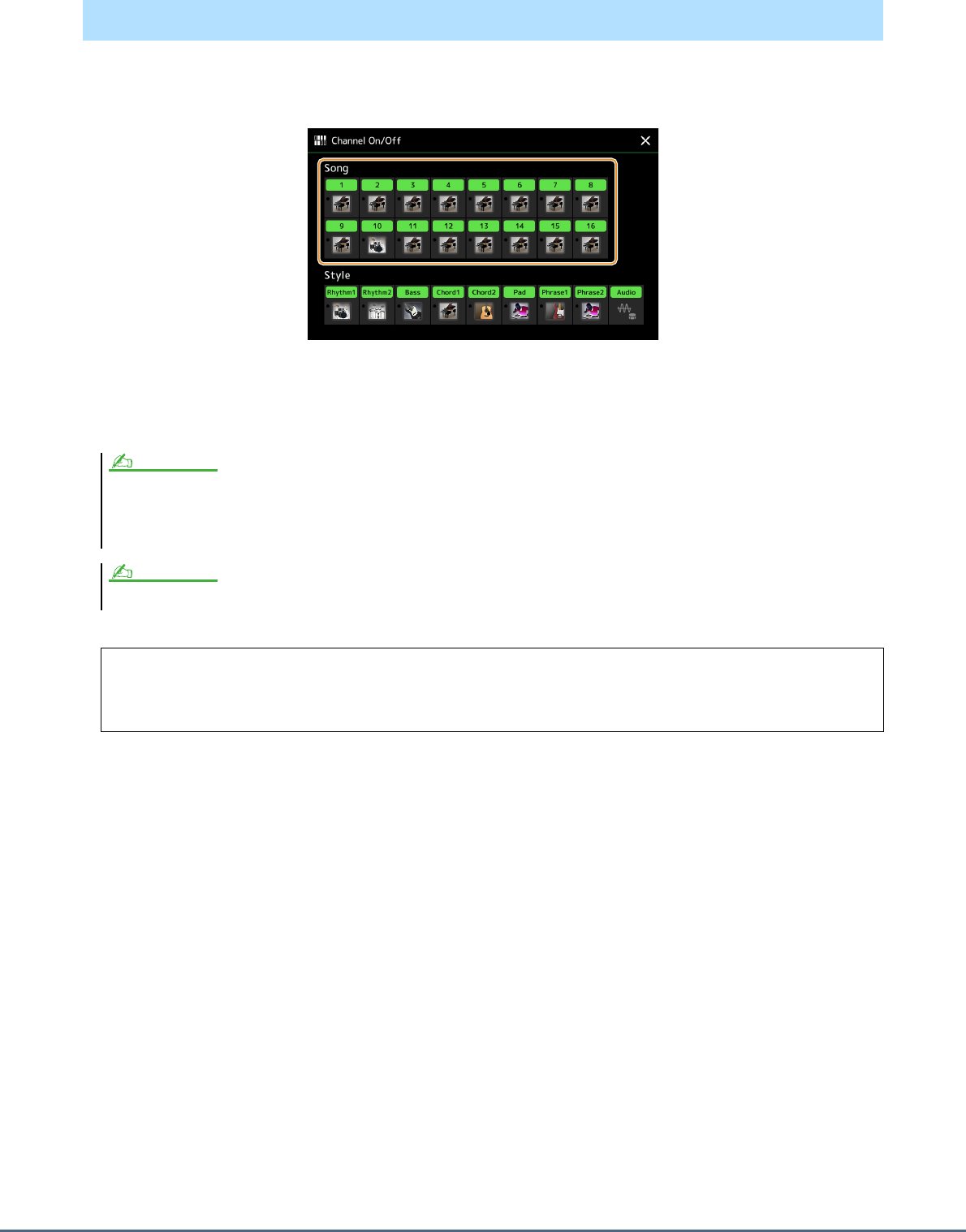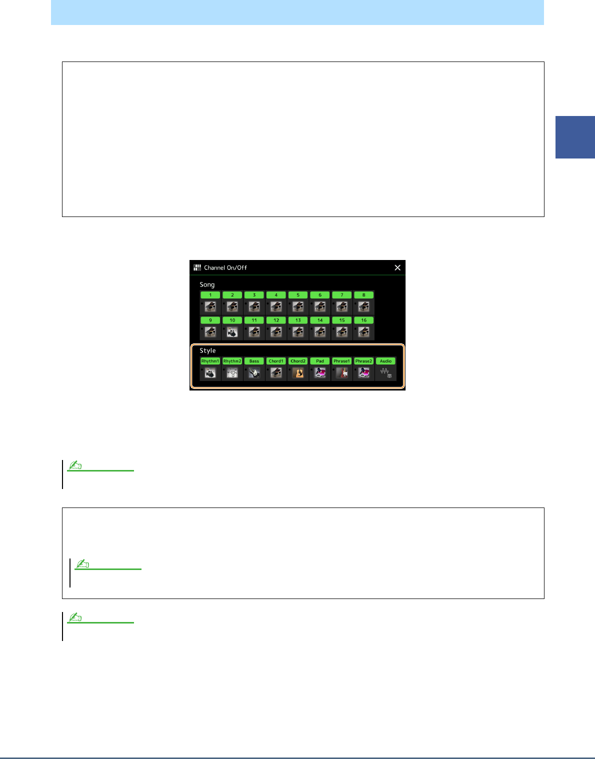 - Turning Each Channel of the Style On/Off