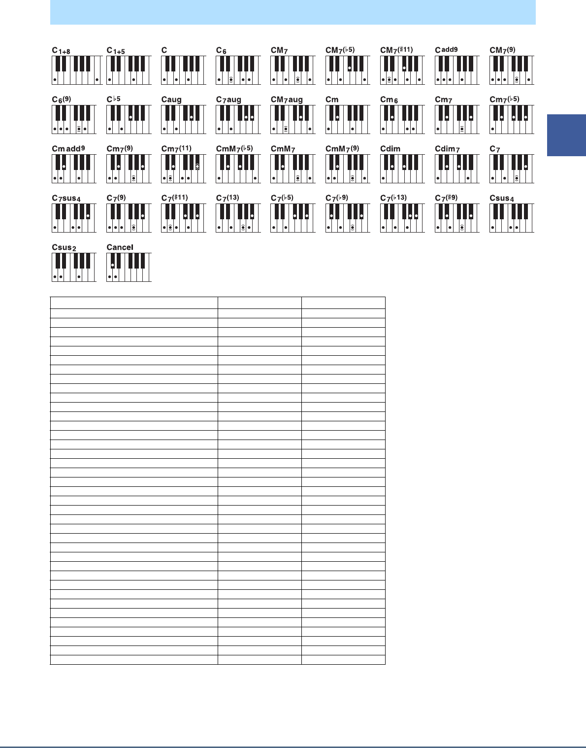 - Chord Types Recognized in the Fingered Mode