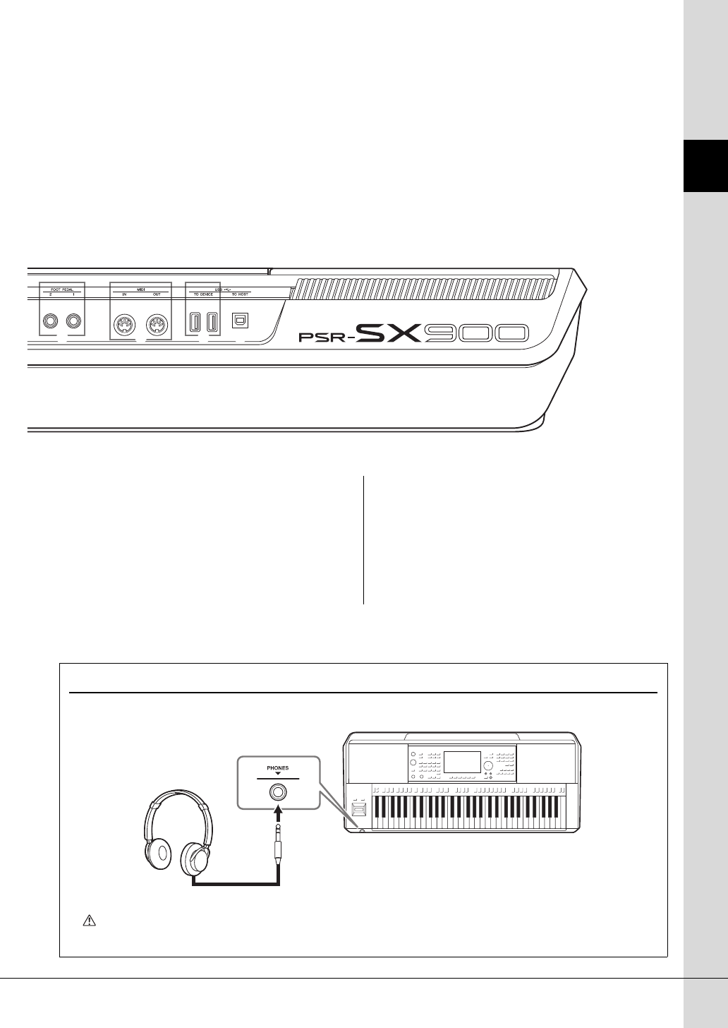 - 使用外接音箱系统用于播放(MAIN OUTPUT(主输出)插口, SUB (AUX) OUTPUT(子(辅助)输出)插口(PSR-SX900))