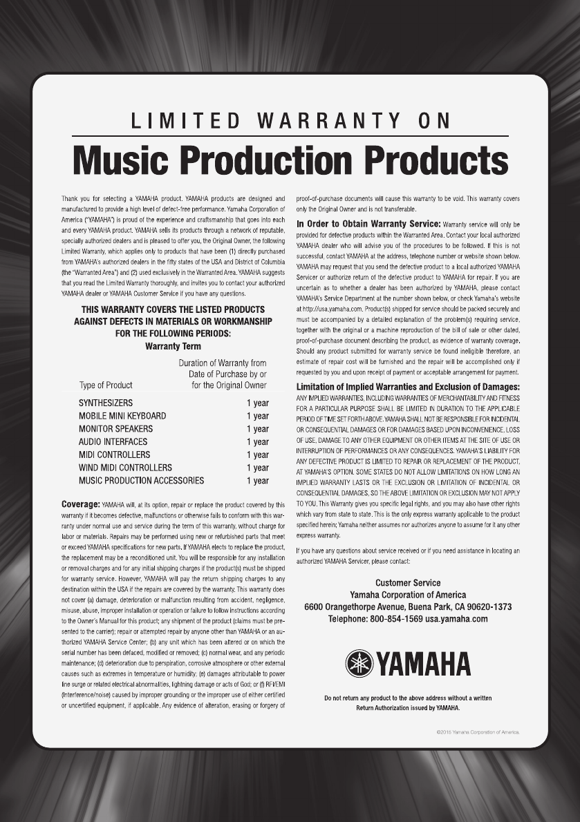 * This applies only to products distributed by YAMAHA CORPORATION OF AMERICA.