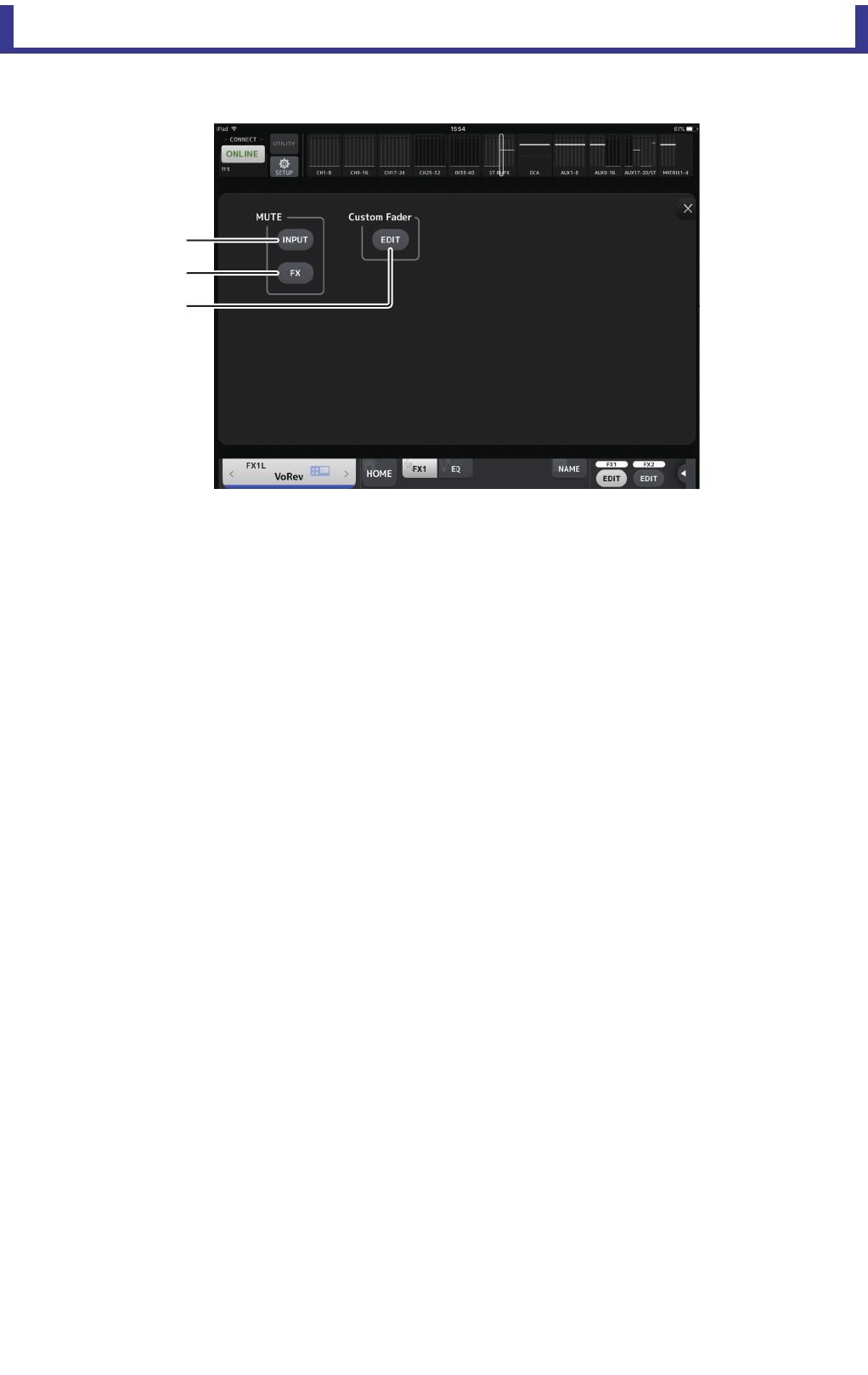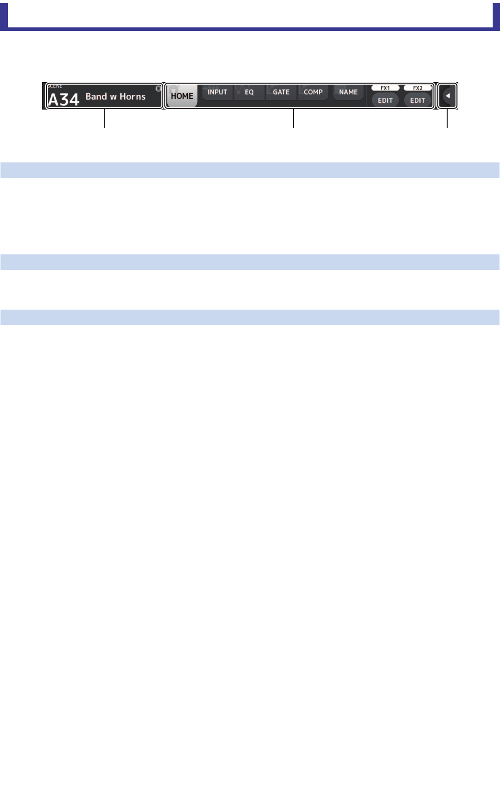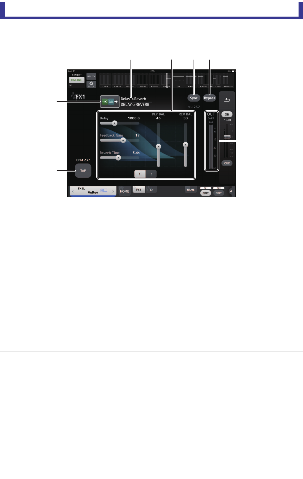 Tap the return button of the Overview strip area or the FX1/FX2 EDIT buttons to display the screen immediately before opening the FX screen.