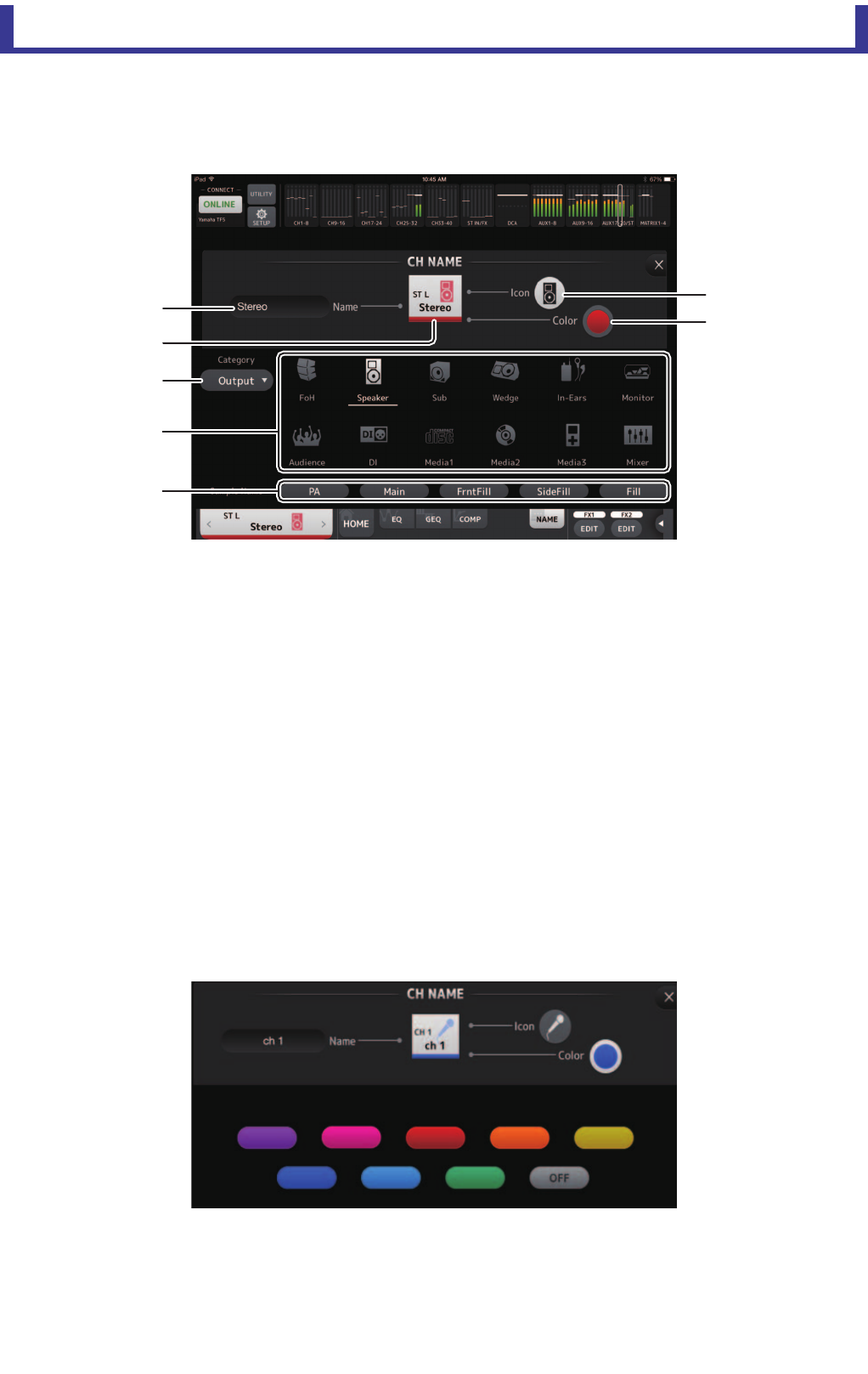 Displayed when you tap the NAME button in the TOOLBAR area.