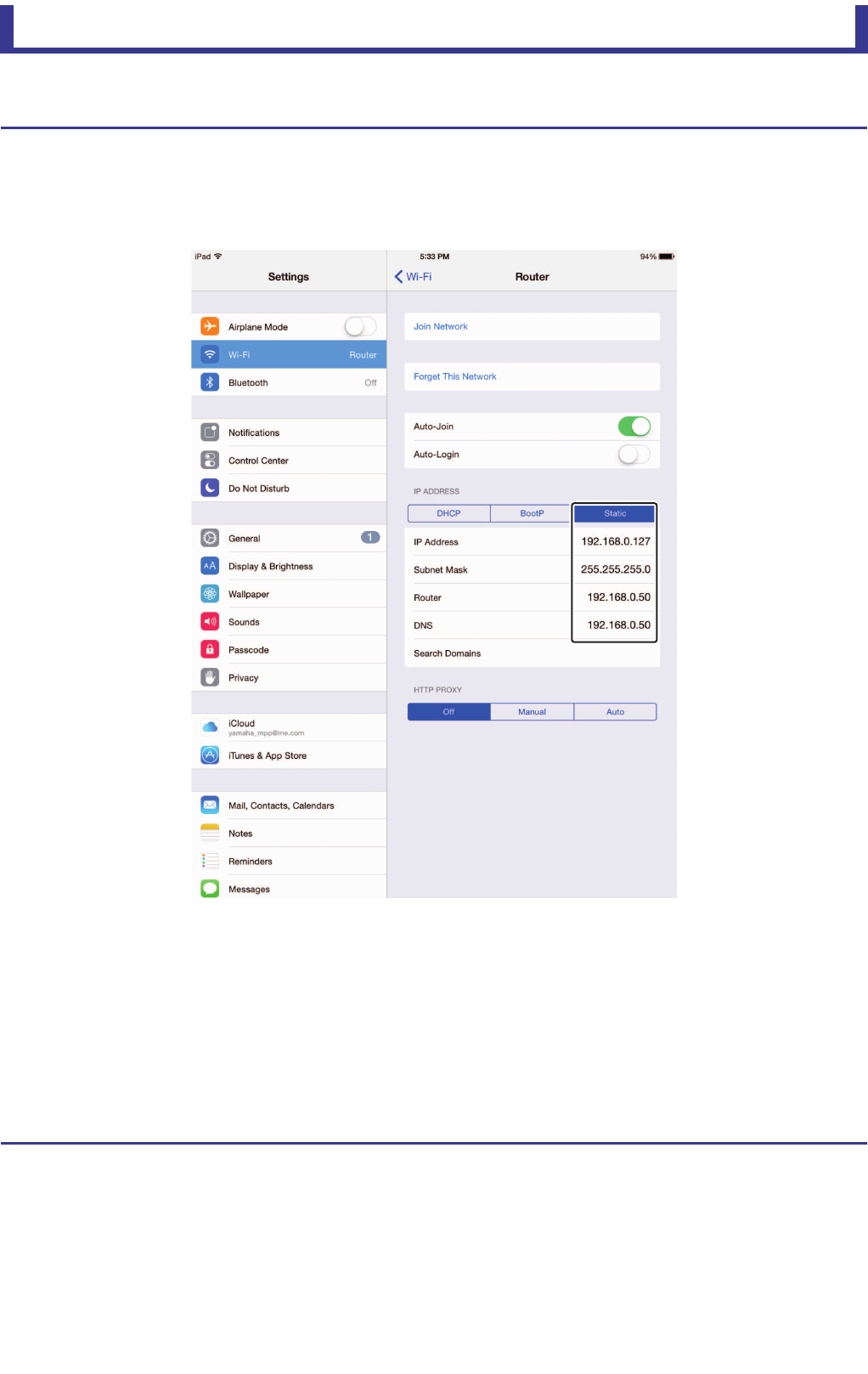 • Make sure the subnet assigned to the iPad matches the subnet assigned to the console.