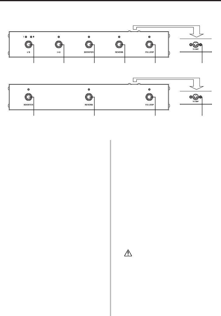 에서 FX LOOP 풋 스위치가 ON 에 있