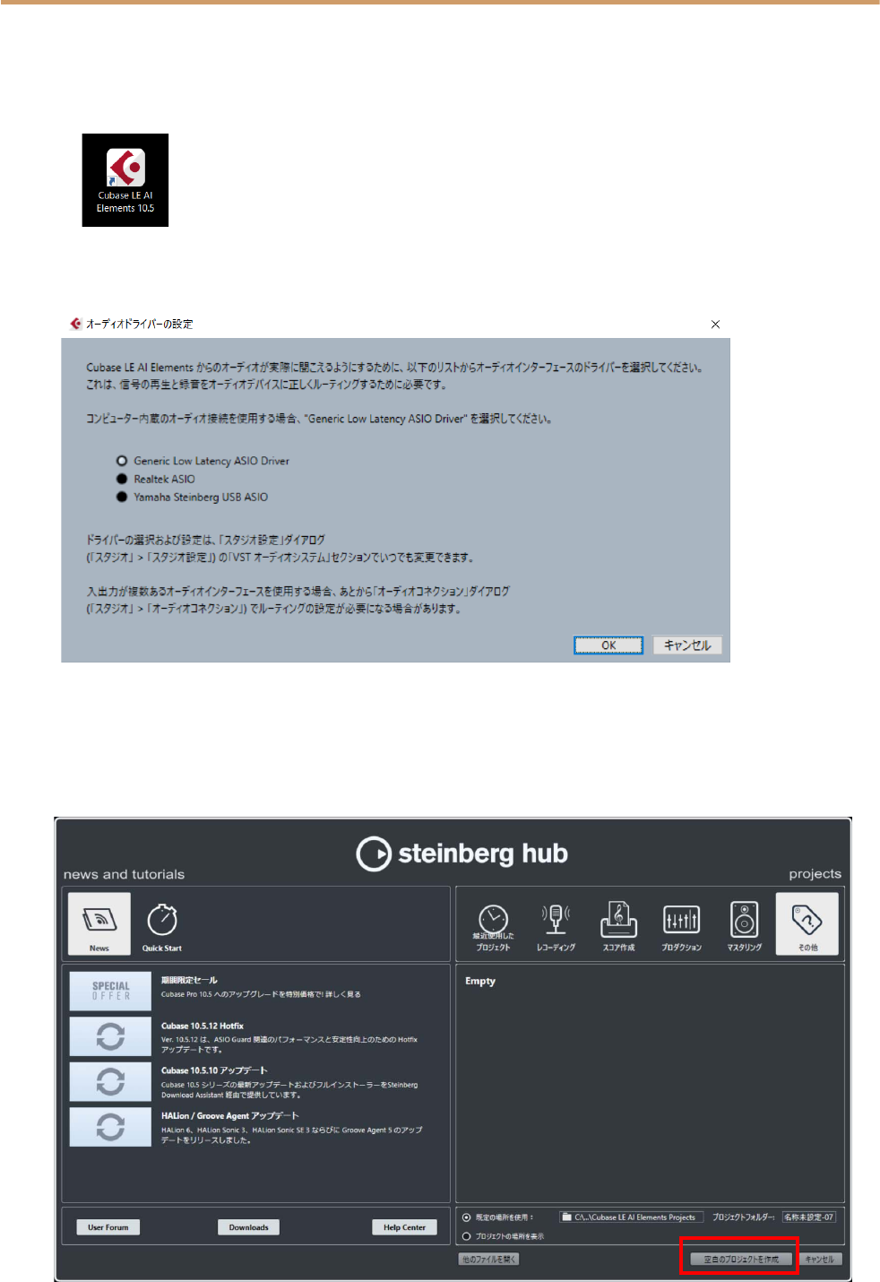 * 起動時にオーディオドライバー設定が表示された場合は、「GenericLowLatencyASIODriver」
