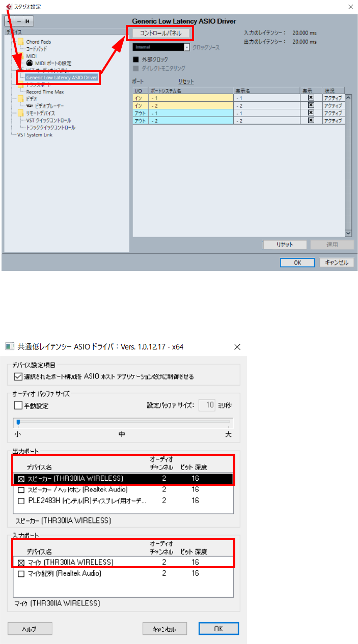 6. 「GenericLowLatencyASIODriver」を選択し、画面右上の「コントロールパネ