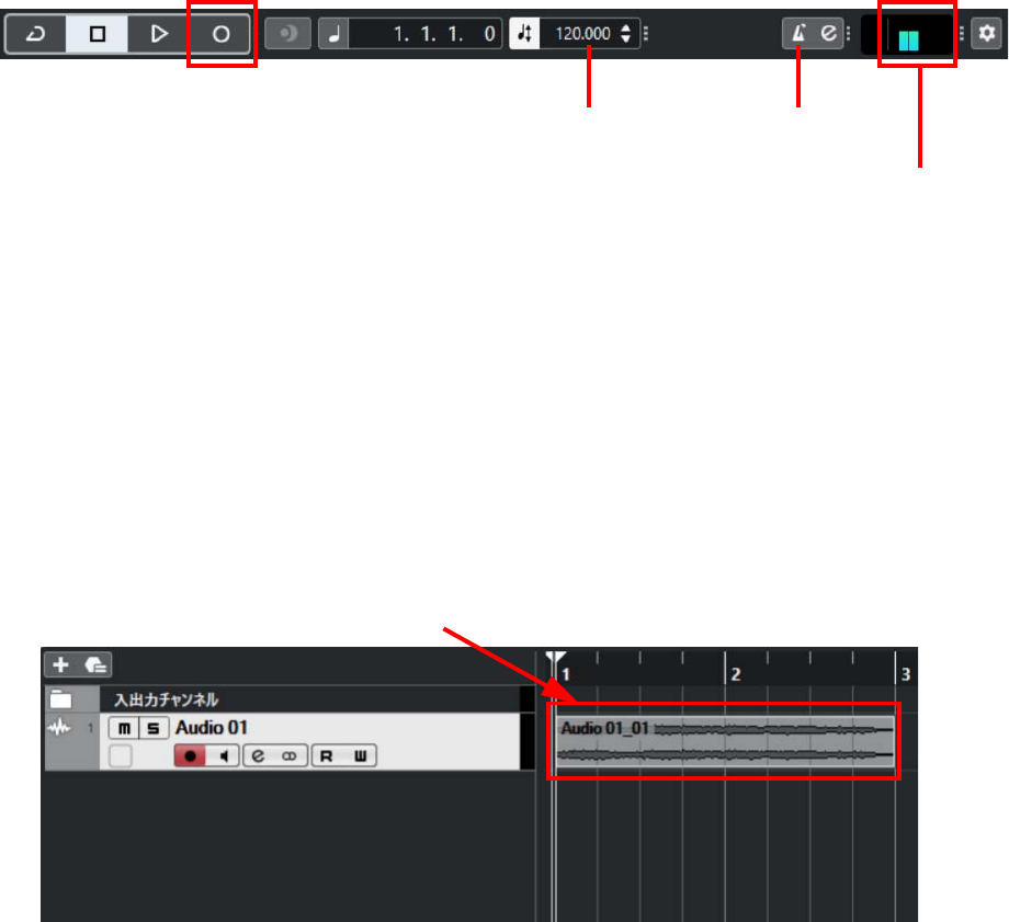 * メトロノームのオン/オフ、テンポ設定(ダブルクリック後、直接数値を入力)は必要に応じて設定し