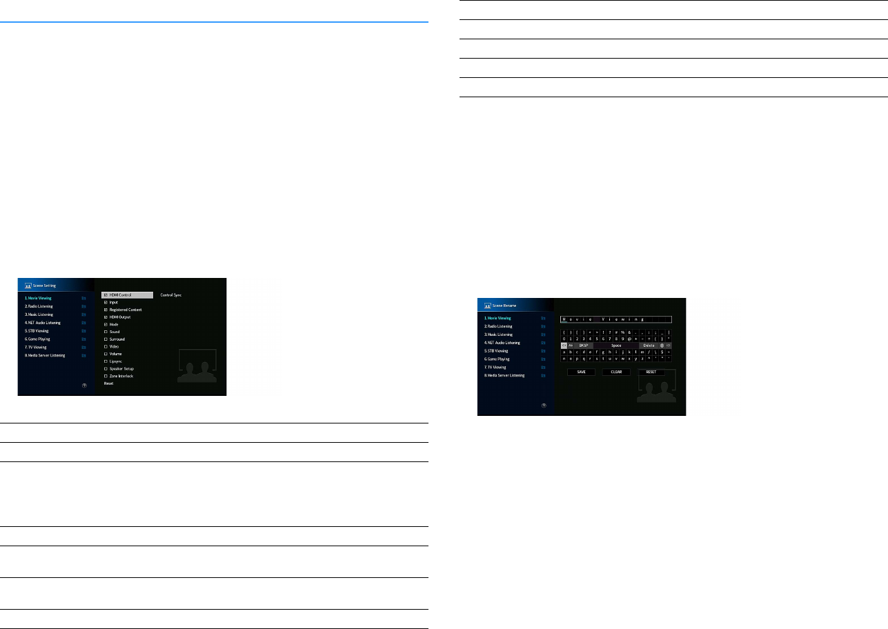 - Selecting the input source and favorite settings with one touch (SCENE)