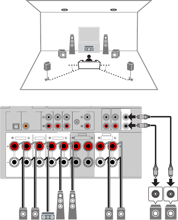 - Enjoying sound field effects without surround speakers (Virtual CINEMA DSP)