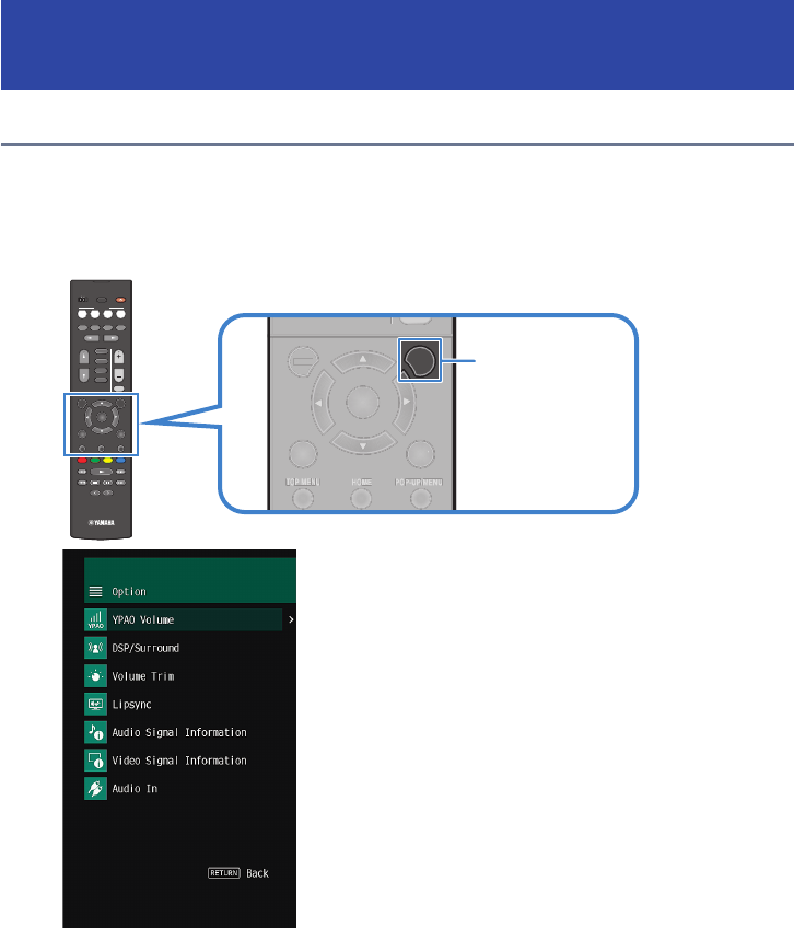 (For AUDIO 3-5, TUNER, TV, MusicCast Link, SERVER, NET RADIO, Bluetooth, USB only “Manual” can be selected.)