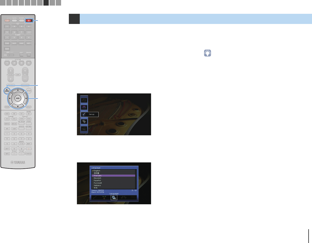 - Selecting an on-screen menu language