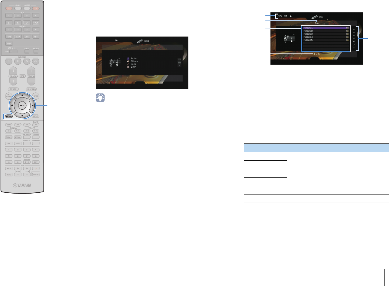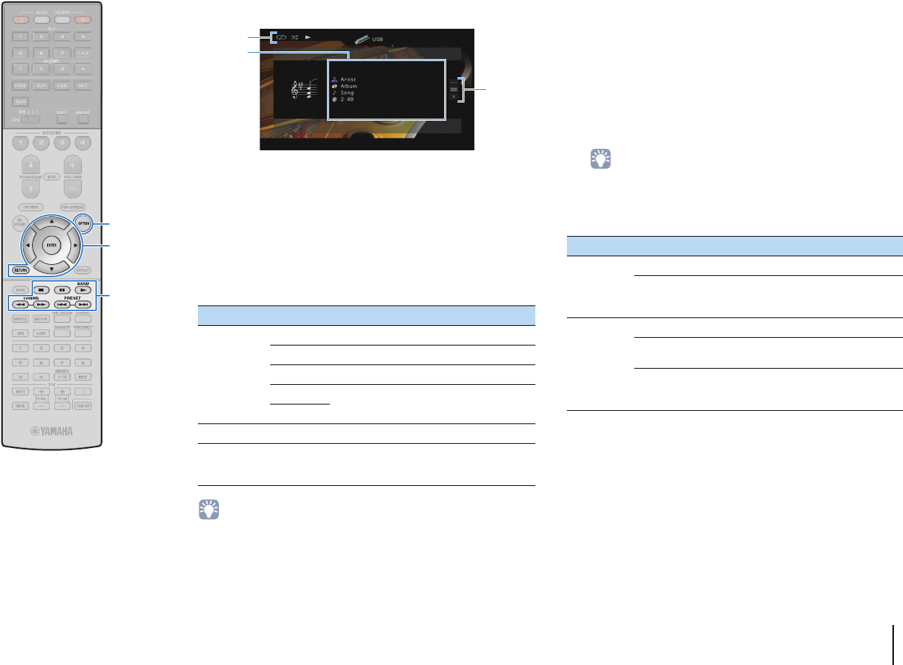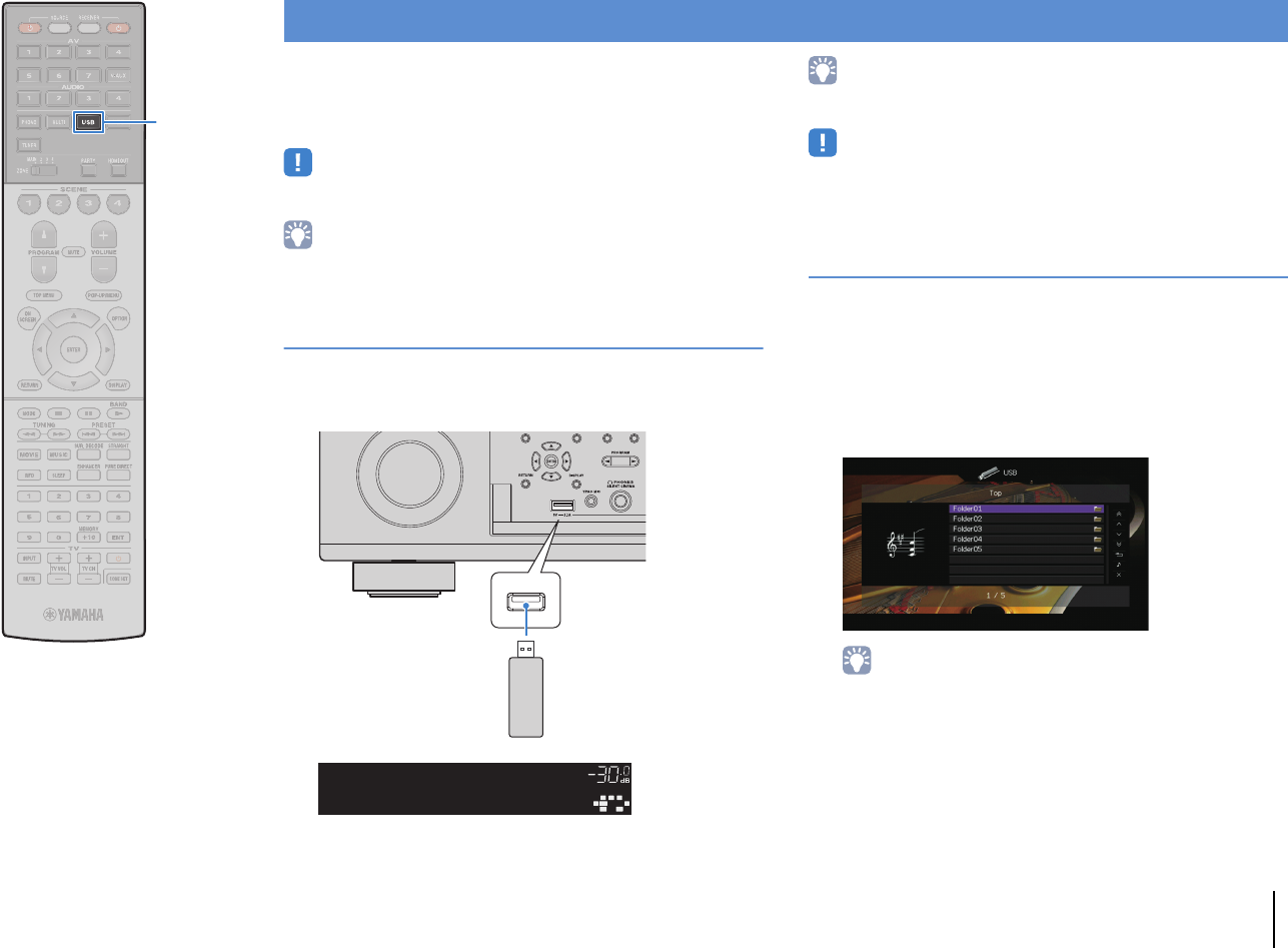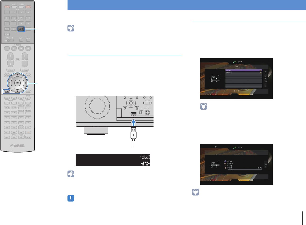 - Playing back music stored on a USB storage device