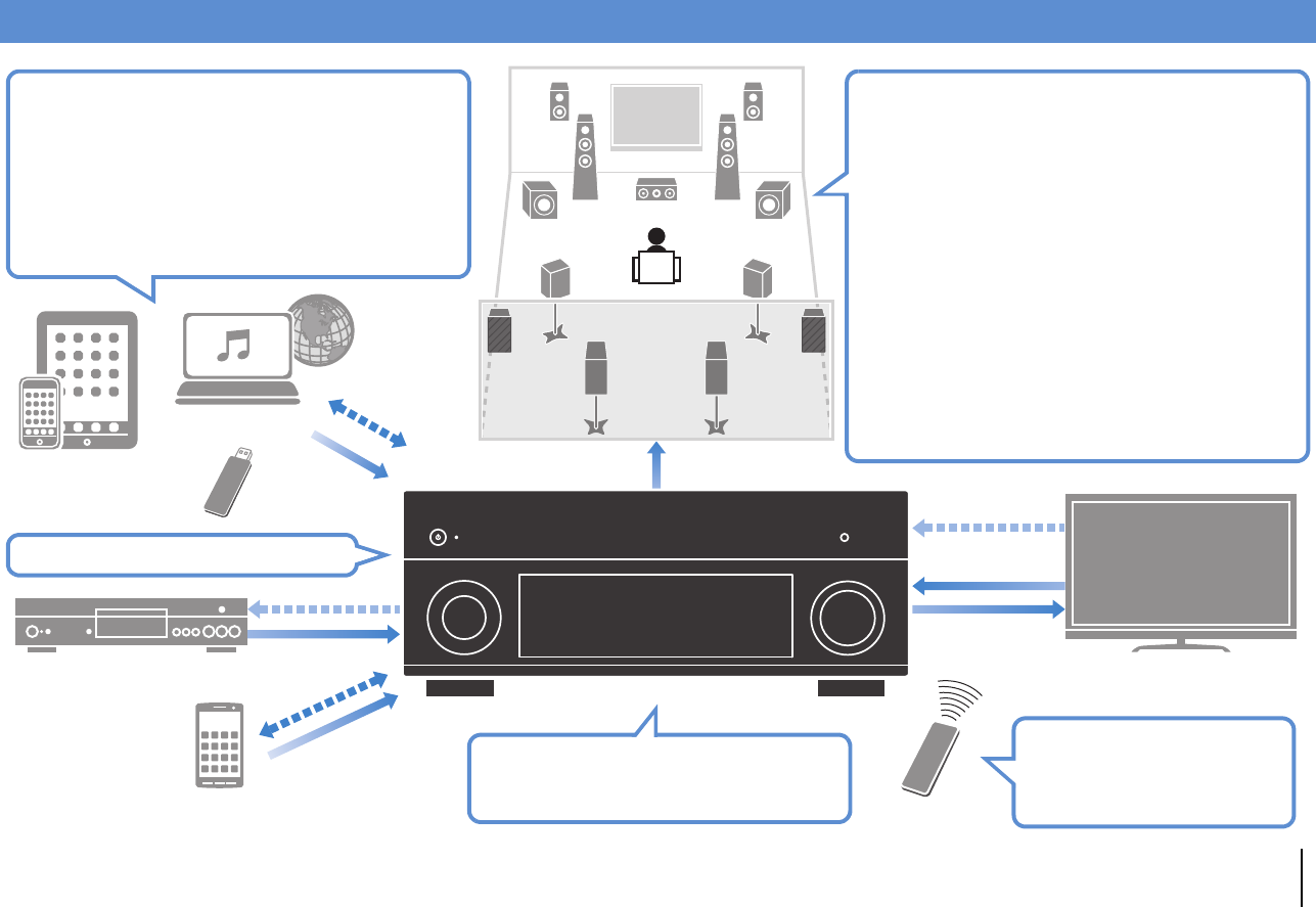- Playing back music stored on media servers (PCs/NAS)