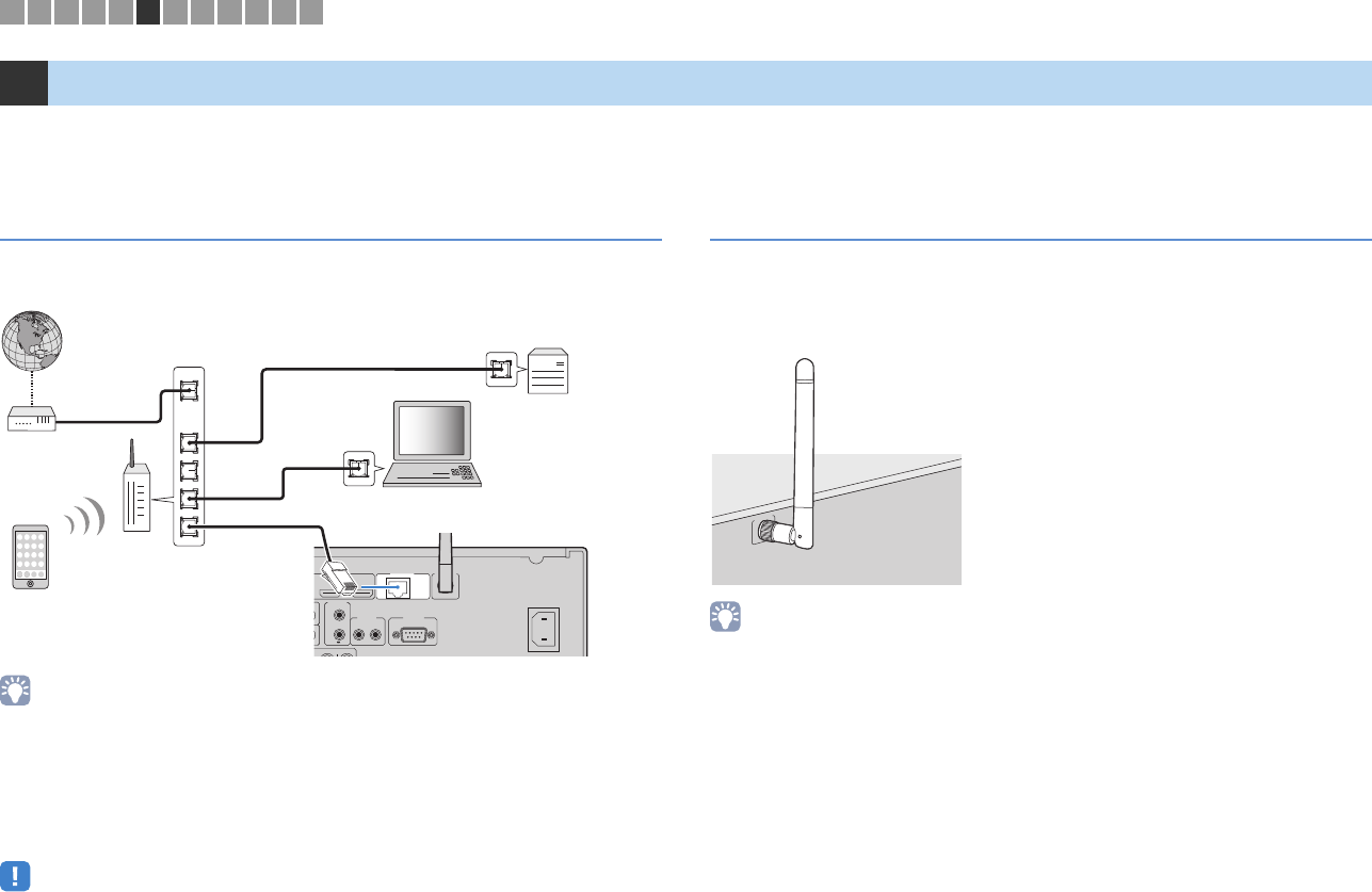 - Connecting a network cable or preparing the wireless antenna
