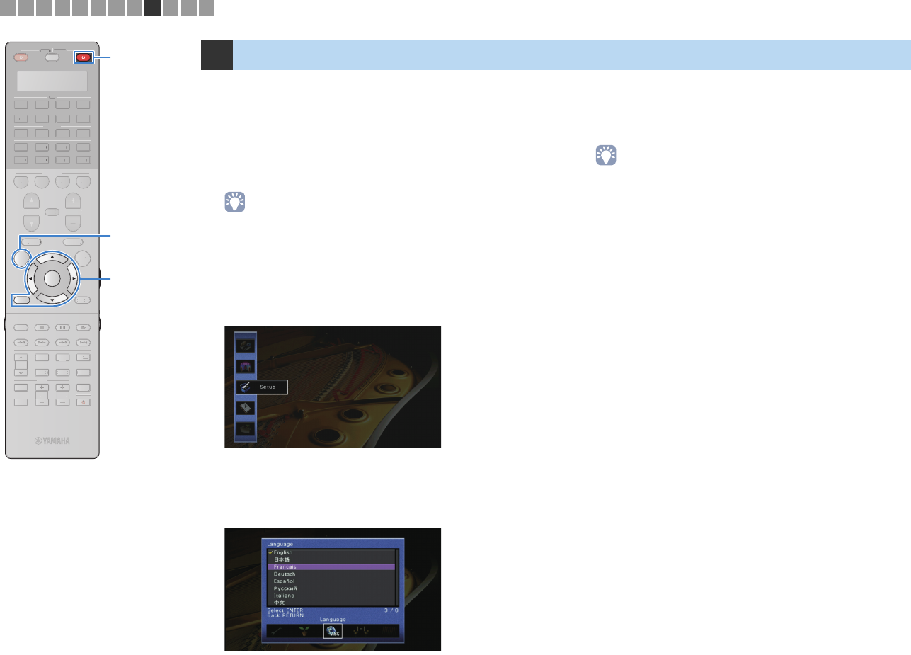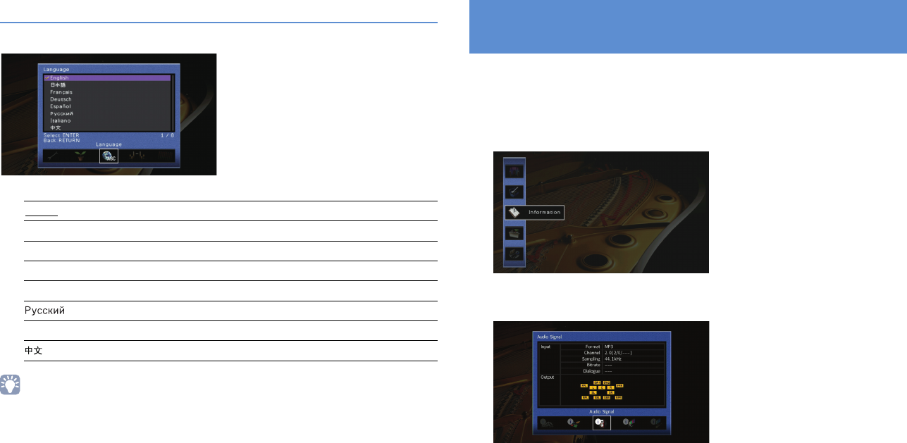 - Selecting an on-screen menu language