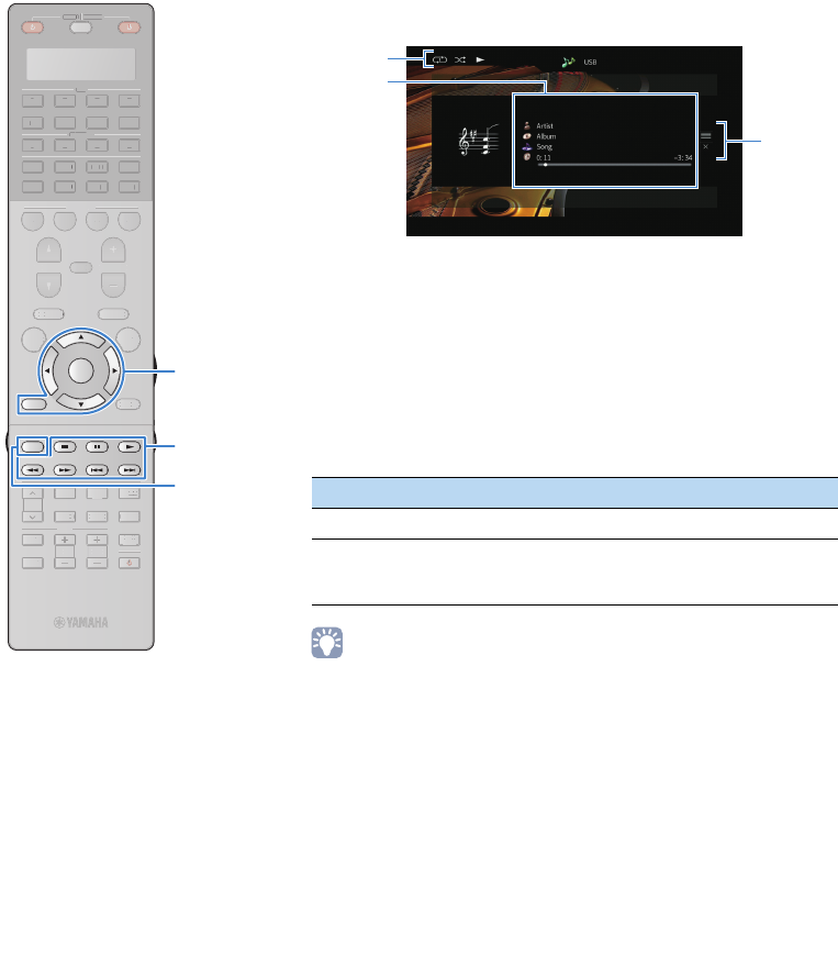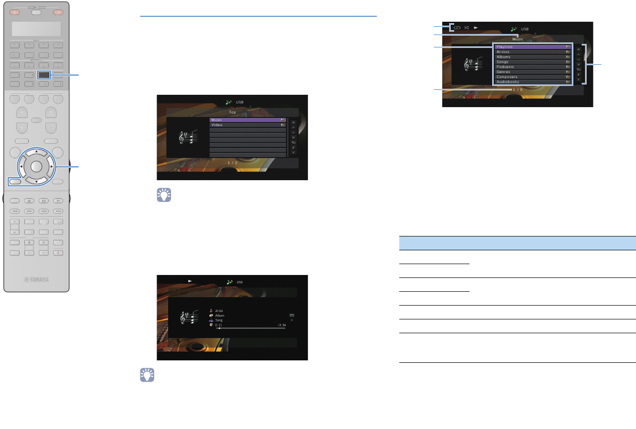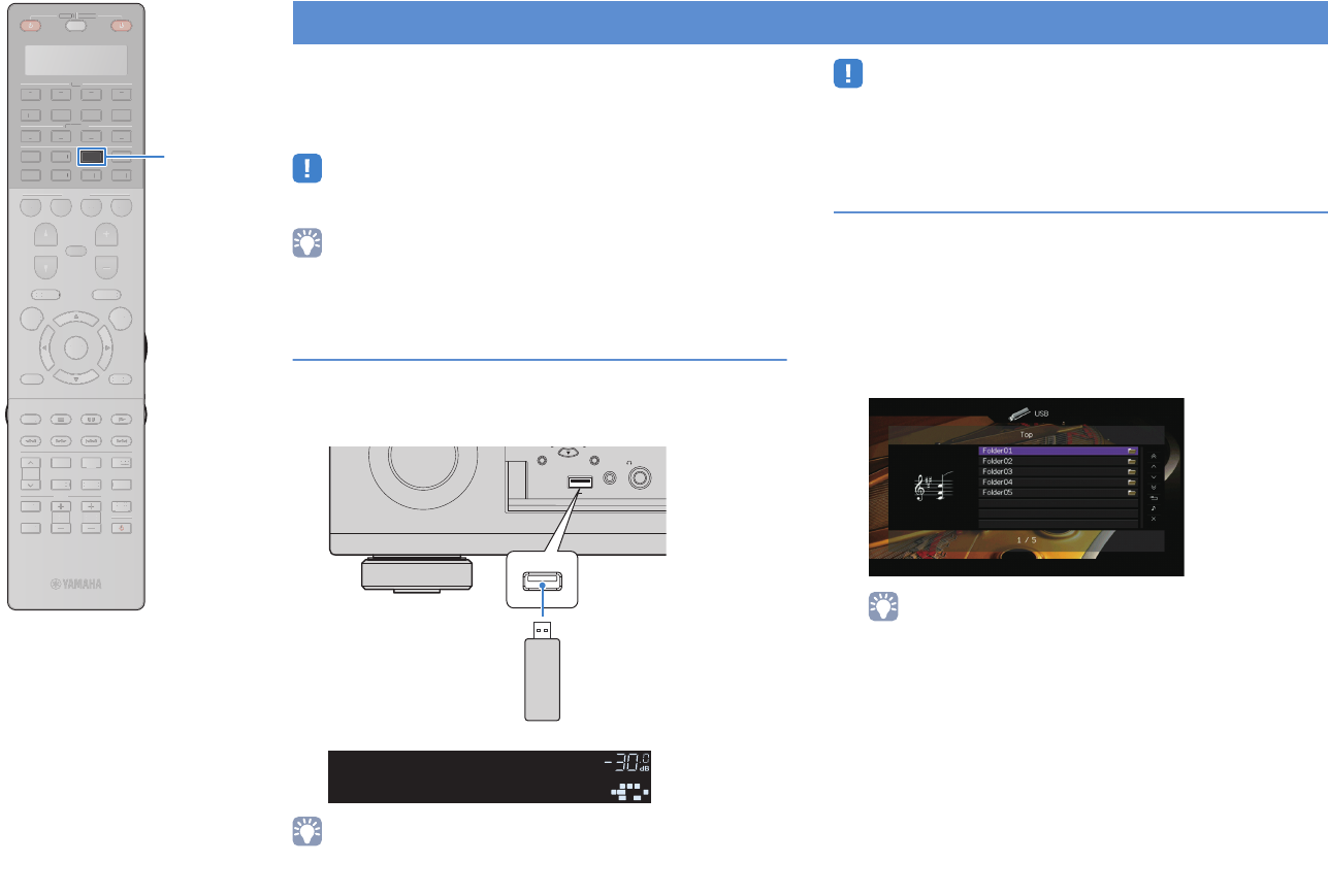- Playing back music stored on a USB storage device