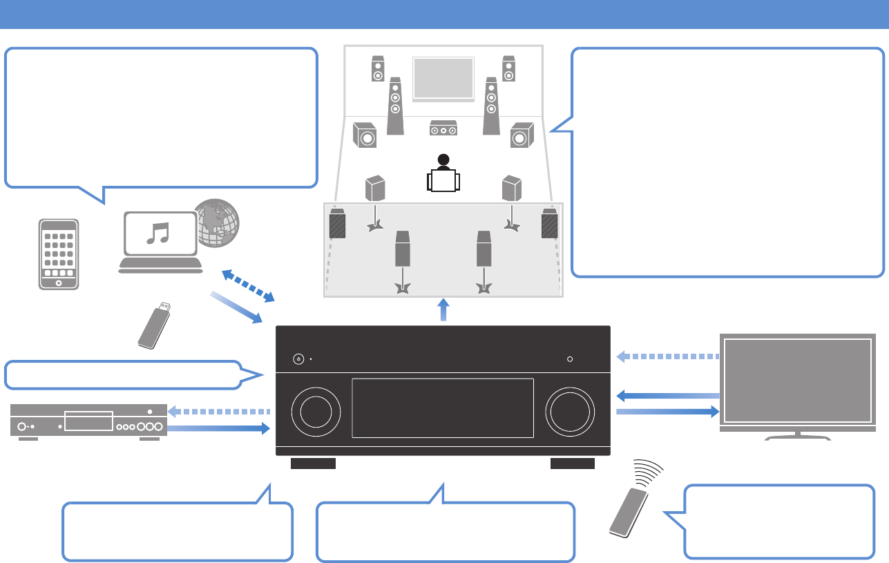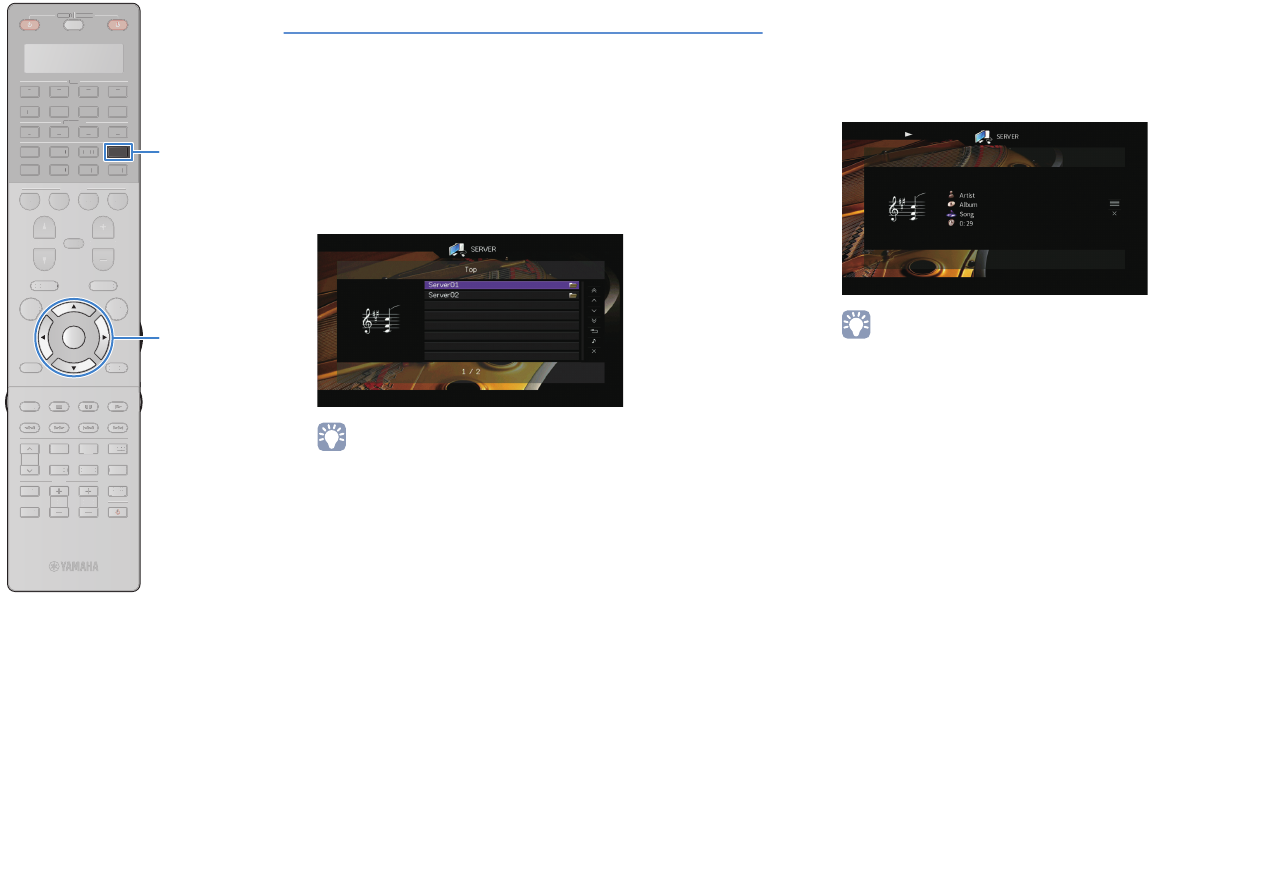 - Playing back music stored on media servers (PCs/NAS)