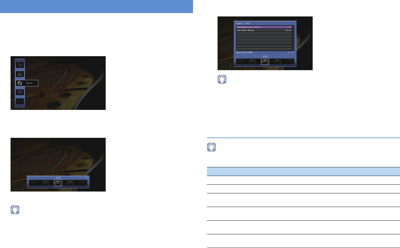 - Configuring input sources (Input menu)