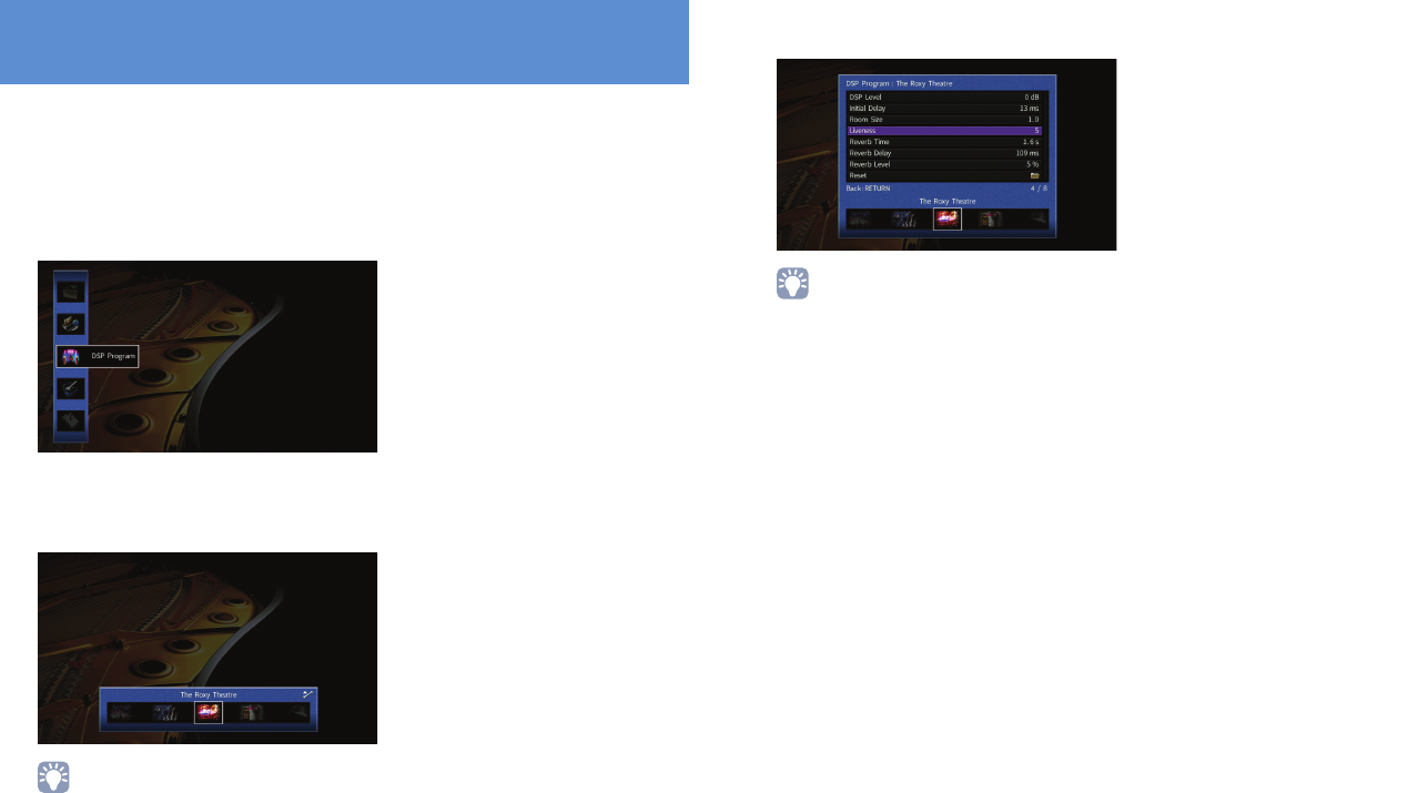 - Configuring sound programs/surround decoders (DSP Program menu)