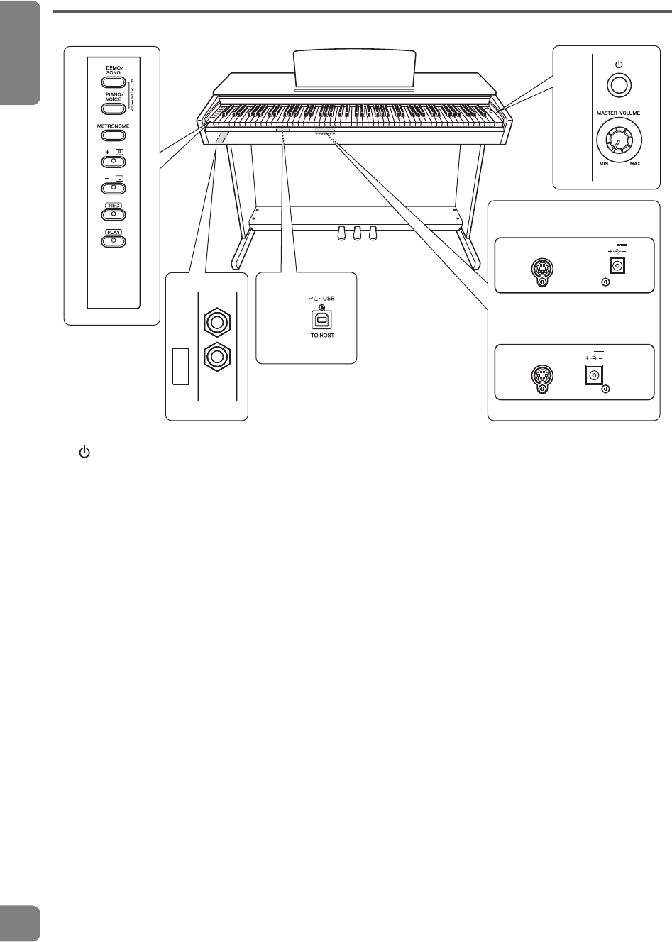 Para información sobre el montaje del soporte del teclado, consulte las instrucciones al final de este manual.