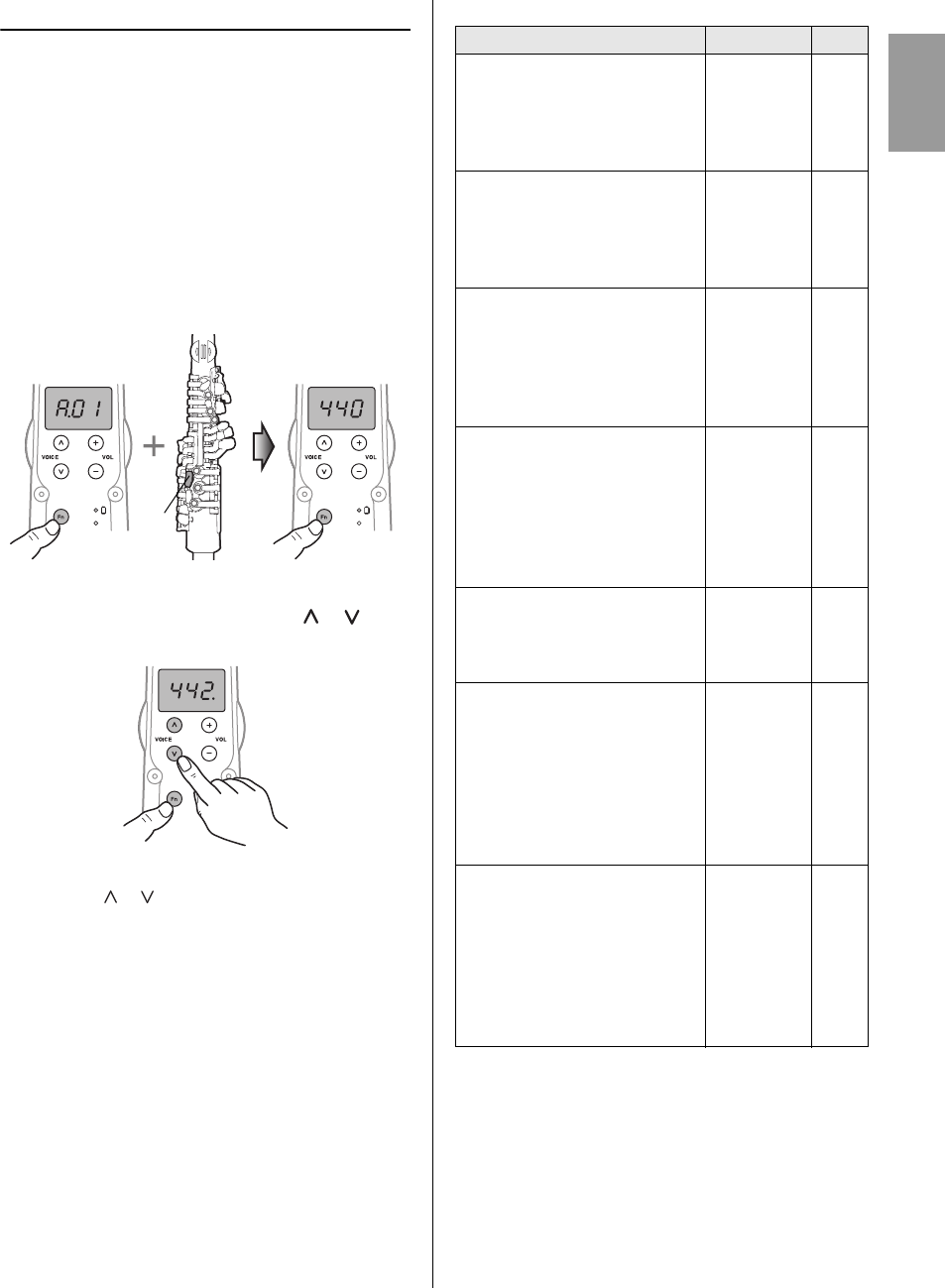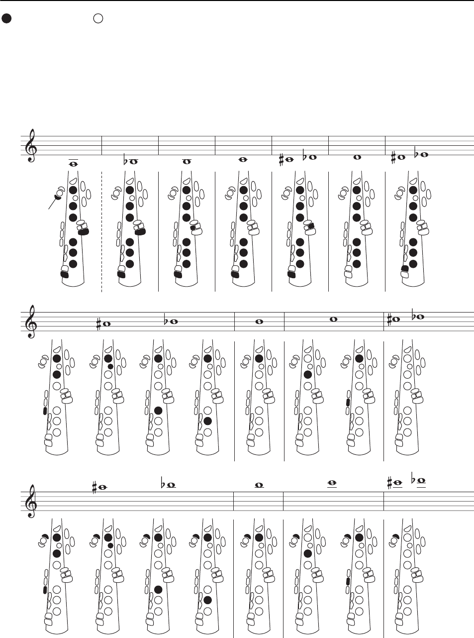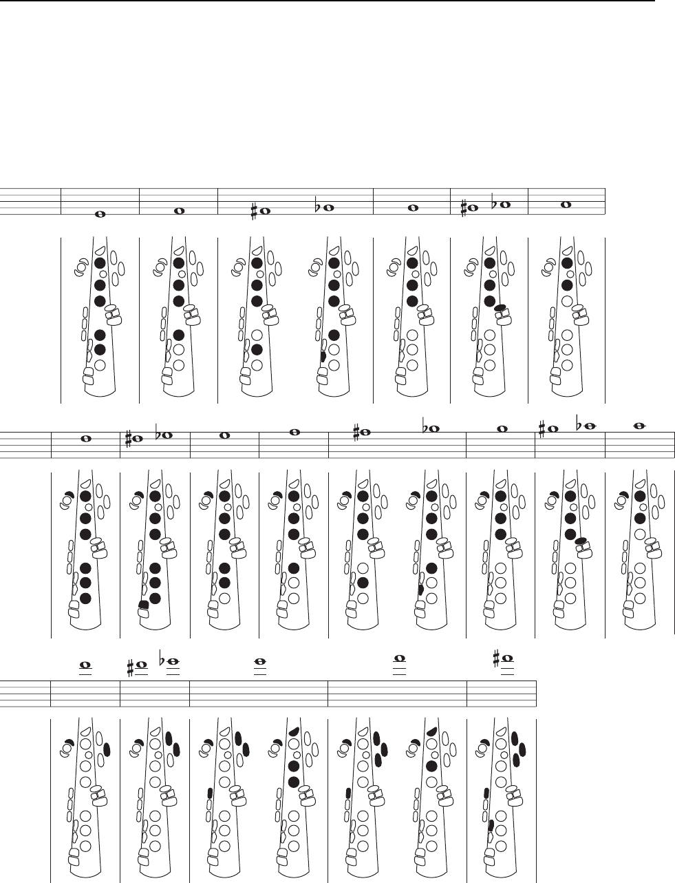 이 표는 색소폰의 일반적인 운지법을 나타냅니다. 기보는