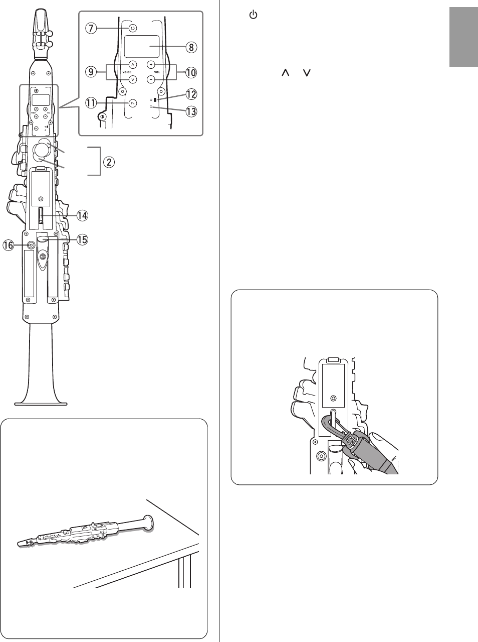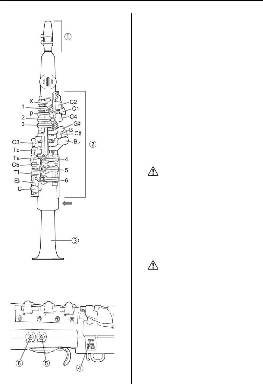• Убирая инструмент в футляр, убедитесь, что разъем PHONES находится сверху. Несоблюдение этого